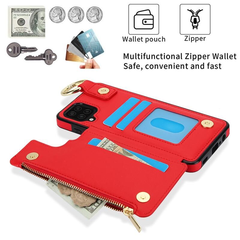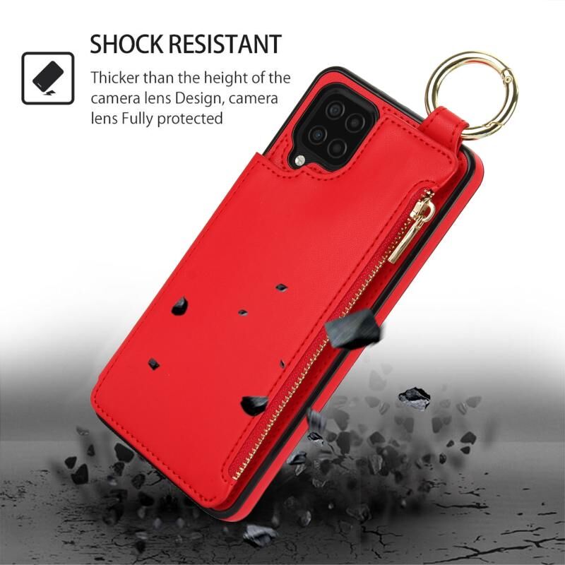 For Samsung Galaxy A12 RFlD Anti-theft Double Buckle Ring Zipper Card Phone Case(Red)