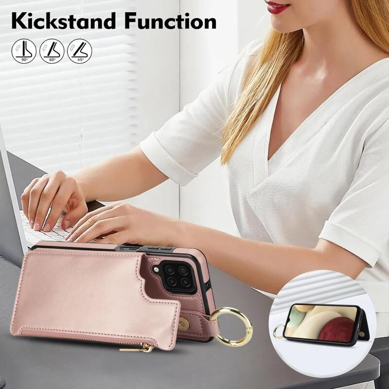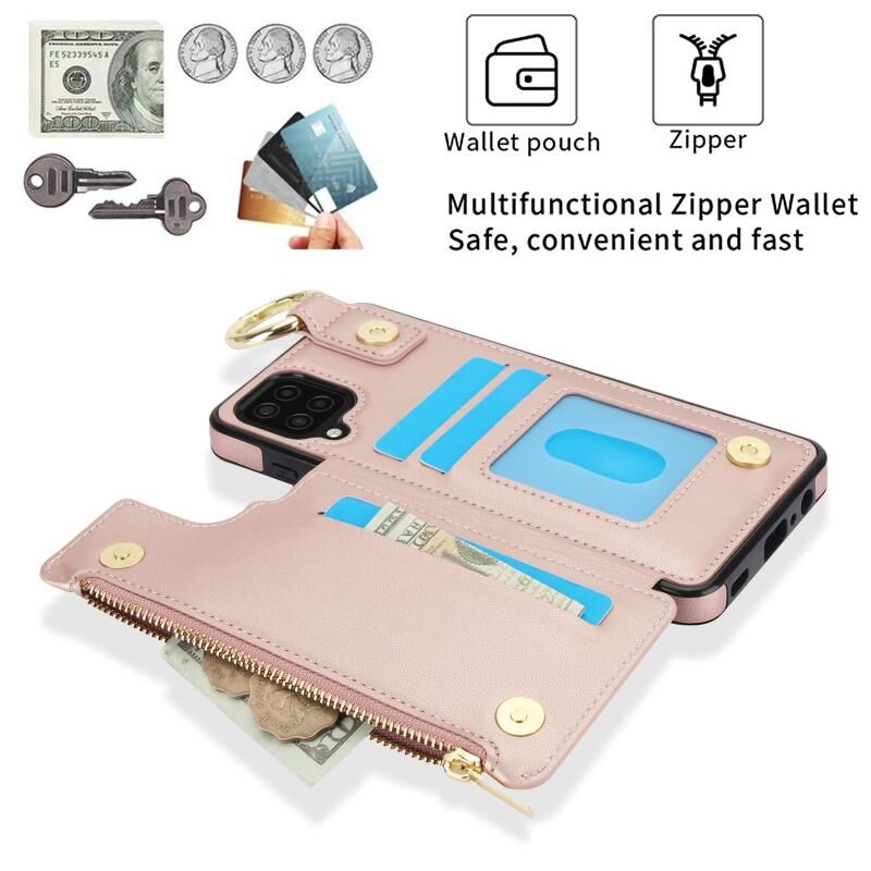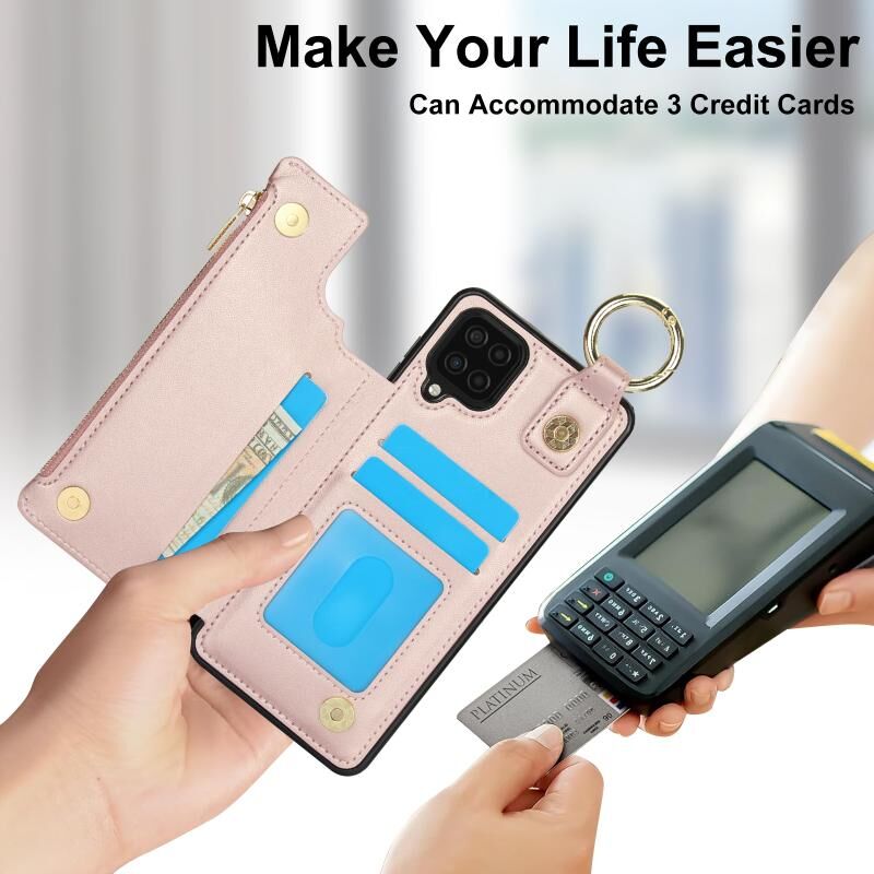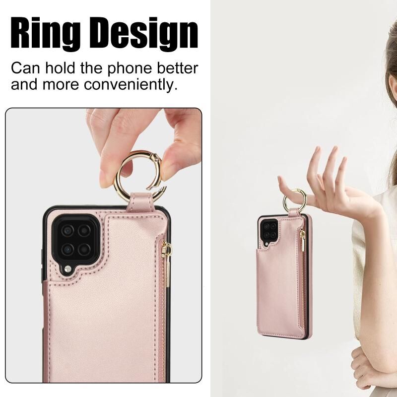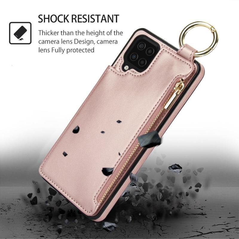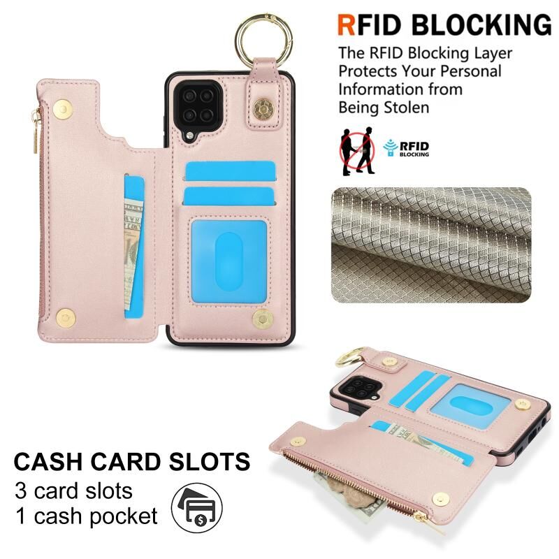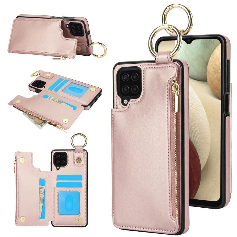 Για Samsung Galaxy A12 RFlD Anti-theft Διπλό πόρπη δαχτυλίδι φερμουάρ κάρτα υπόθεση τηλεφώνου (Rose Gold)