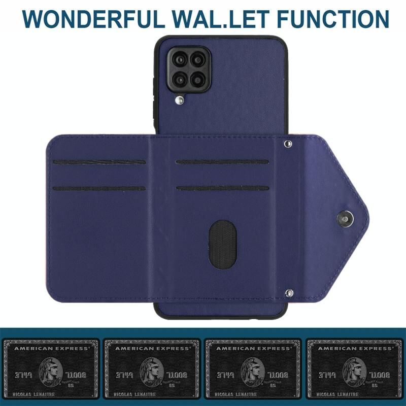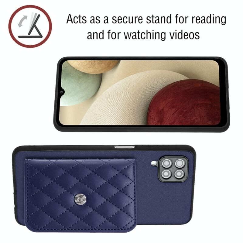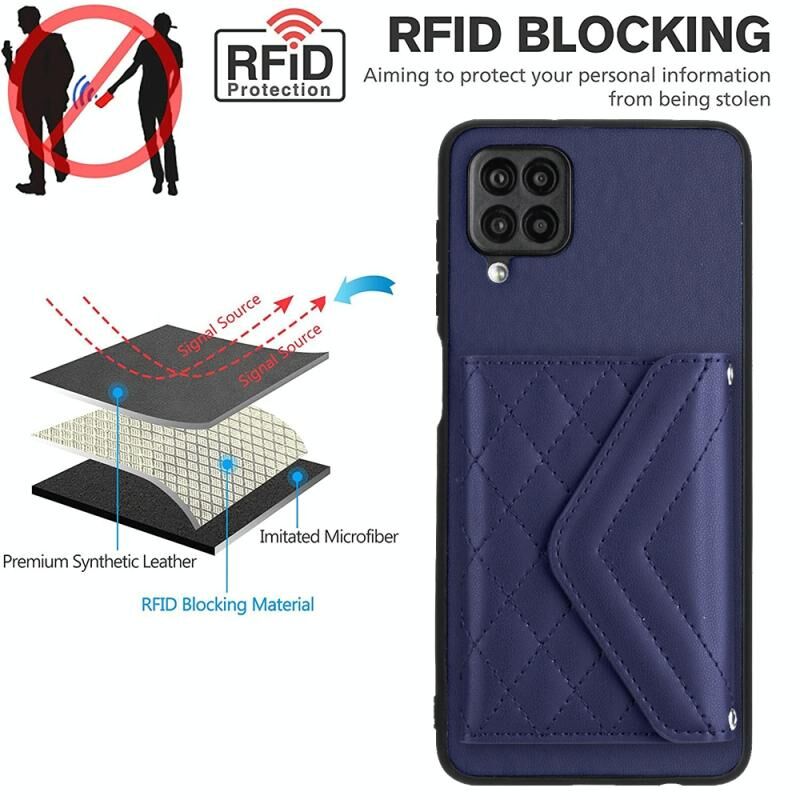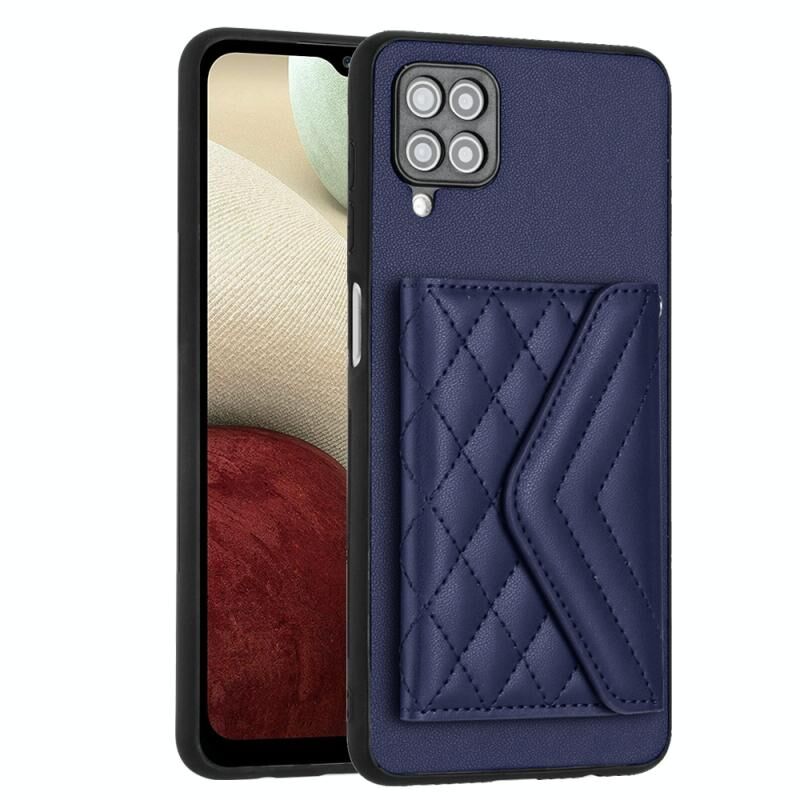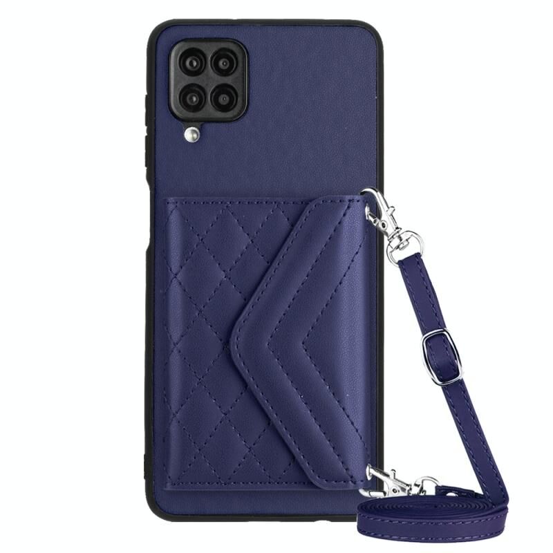 Θήκη κινητού τηλεφώνου Samsung Galaxy A12 με κάρτες υφής ρόμβου και μακρύ κορδόνι (Μπλε)
