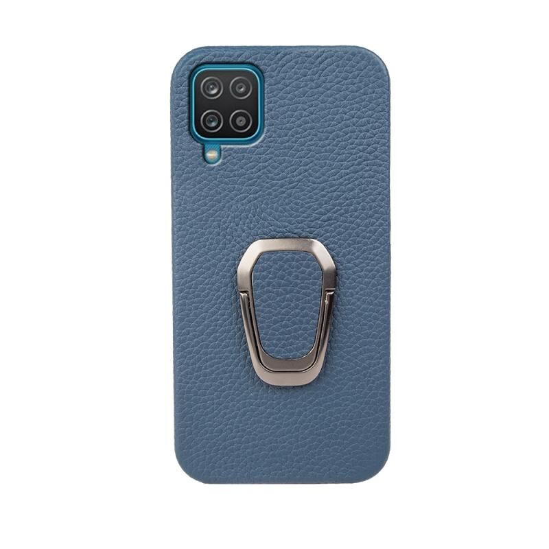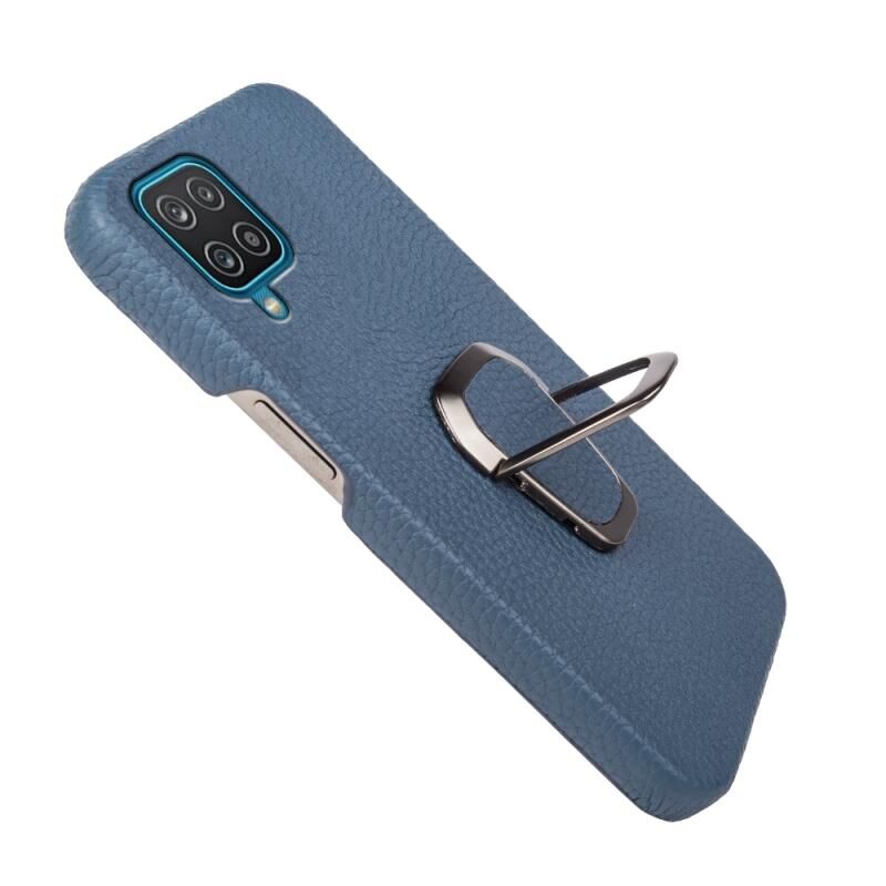 Θήκη κινητού τηλεφώνου Samsung Galaxy A12 με δακτύλιο και γνήσιο δέρμα υφής λύτσι (Μαύρο)