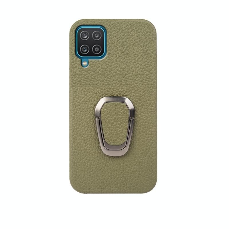Για Samsung Galaxy A12 Δαχτυλίδι κάτοχος Litchi Υφή γνήσιο δέρμα τηλέφωνο υπόθεση (πράσινο)