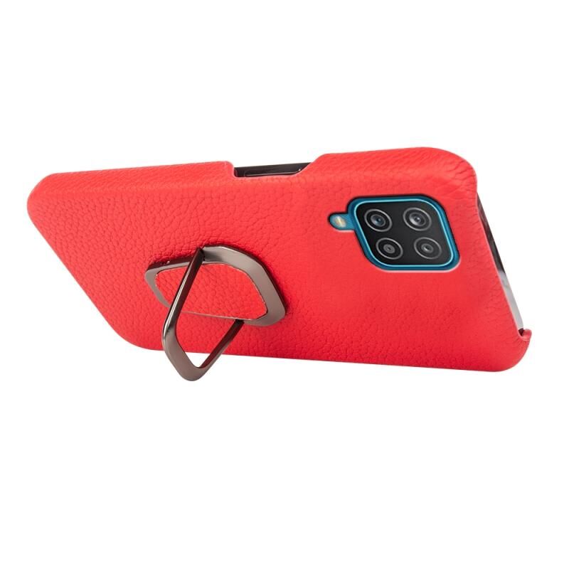 Θήκη κινητού τηλεφώνου Samsung Galaxy A12 με δακτύλιο και γνήσιο δέρμα υφής λύτσι (Μαύρο)