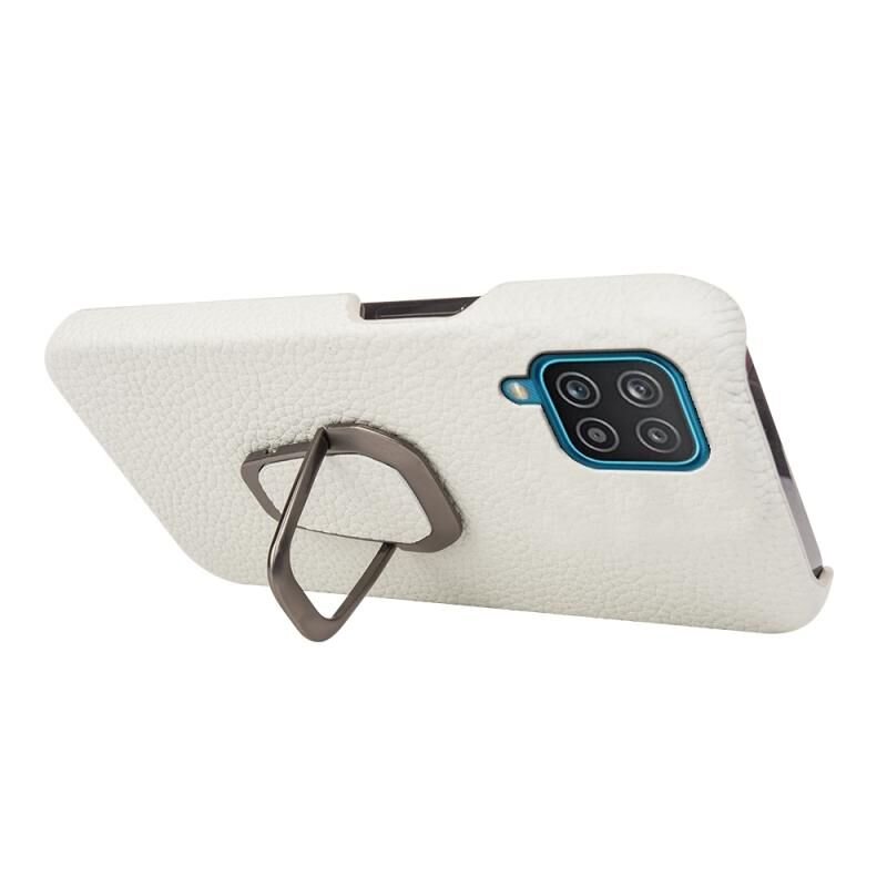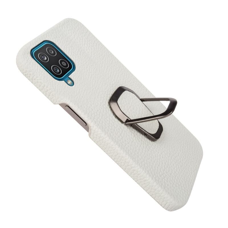 Θήκη κινητού τηλεφώνου Samsung Galaxy A12 με δακτύλιο και γνήσιο δέρμα υφής λύτσι (Μαύρο)