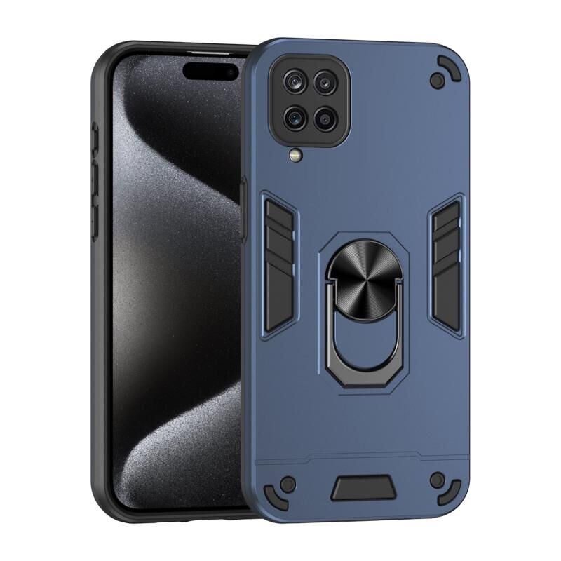 Θήκη κινητού τηλεφώνου για Samsung Galaxy A12 ανθεκτική στις κρούσεις με μεταλλική βάση δακτυλιδιού (Μαύρο)