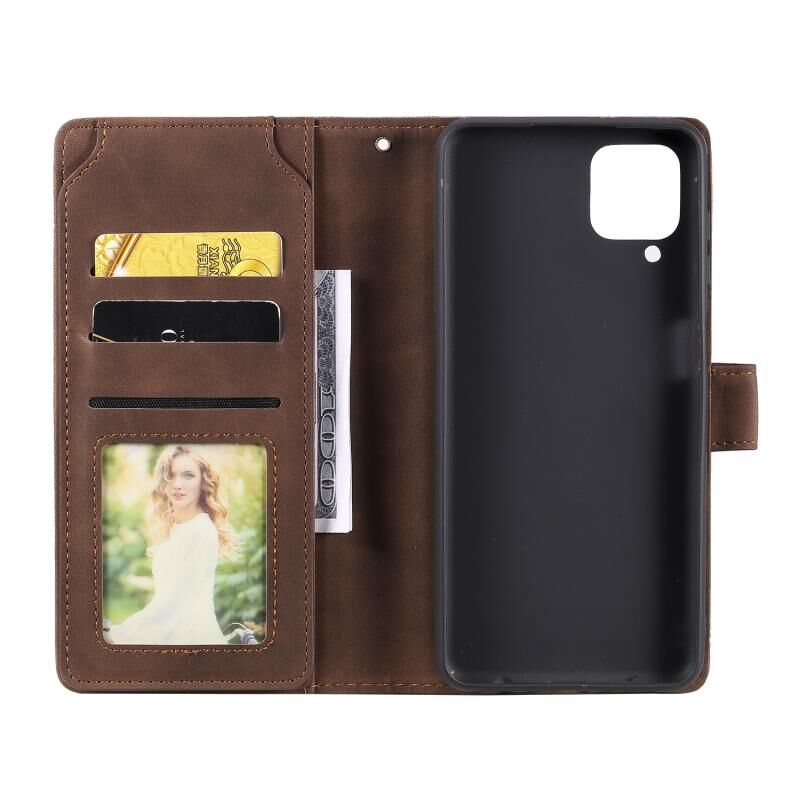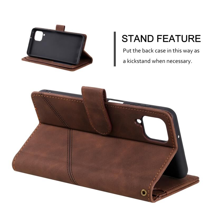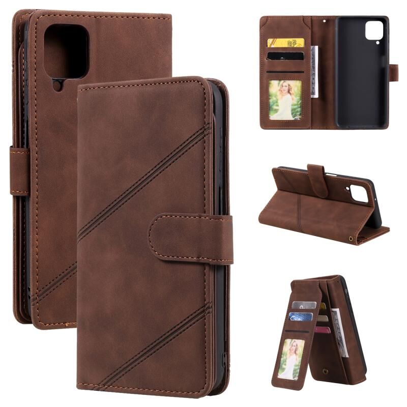 Για το Samsung Galaxy A12 Skin Feel Business Οριζόντια Flip PU δερμάτινη θήκη με θήκη & υποδοχές πολλαπλών καρτών & πορτοφόλι & κορδόνι & κορνίζα φωτογραφιών (Καφέ)