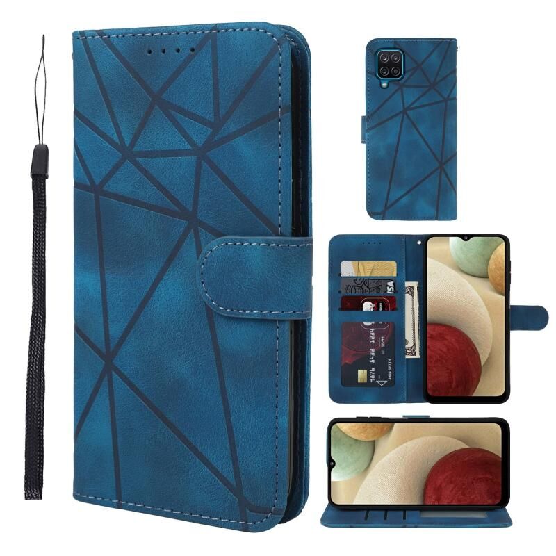 Θήκη τηλεφώνου Samsung Galaxy A12 με δερμάτινη υφή, γεωμετρικά σχέδια (Μαύρο)