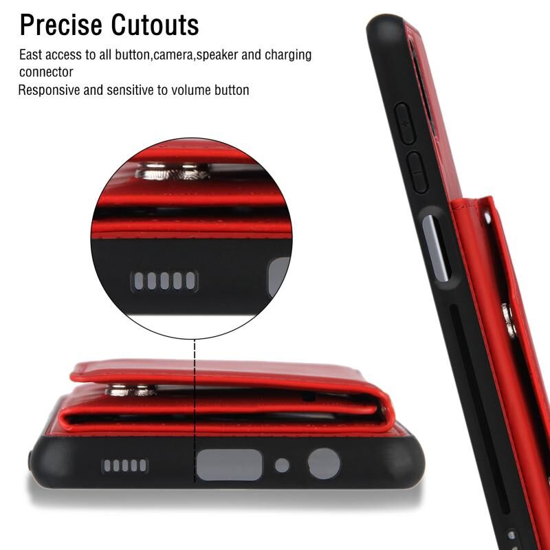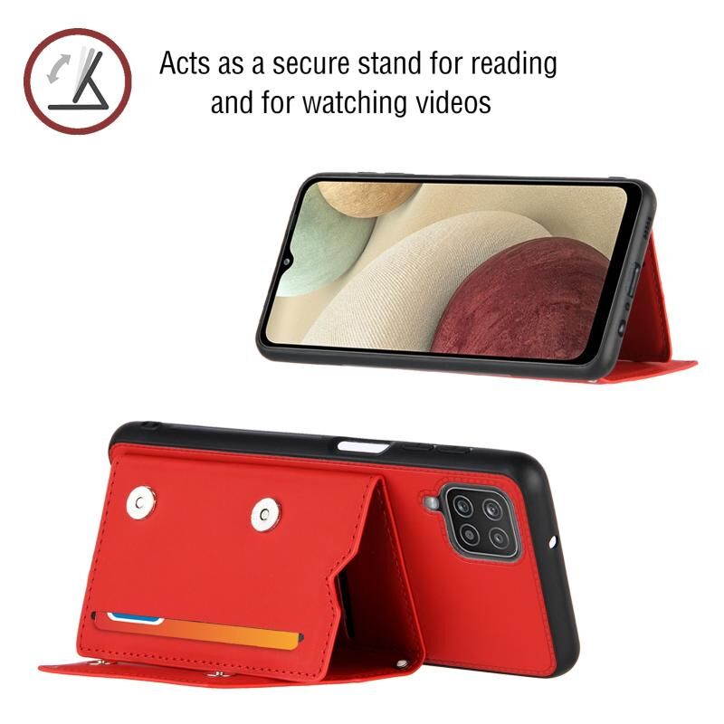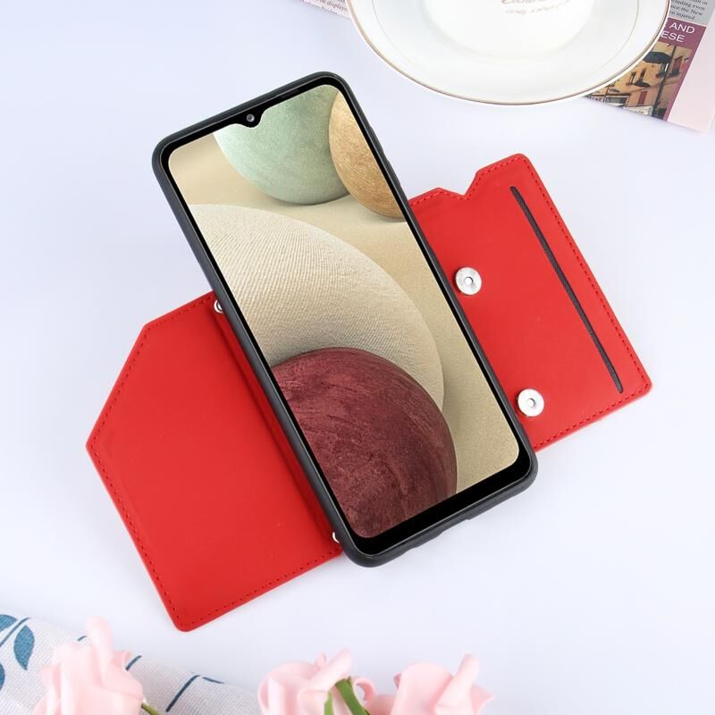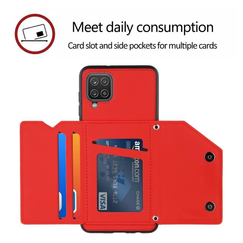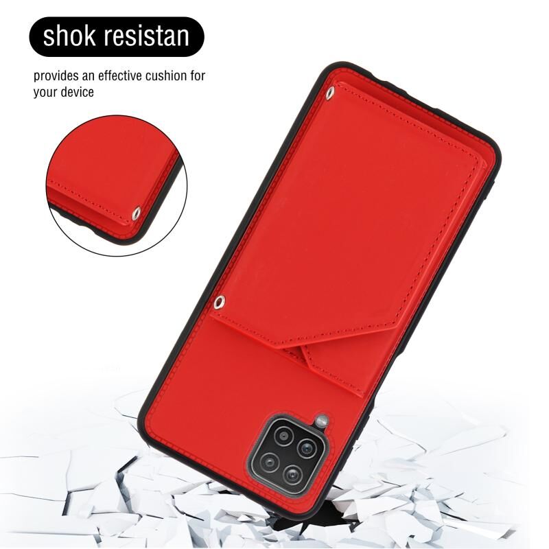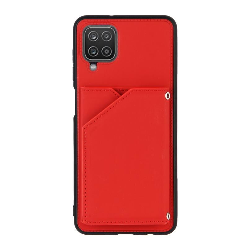 Για το Samsung Galaxy A12 Skin Feel PU + TPU + PC Back Cover Shockproof Case με υποδοχές για κάρτες & θήκη & πλαίσιο φωτογραφιών (Κόκκινο)