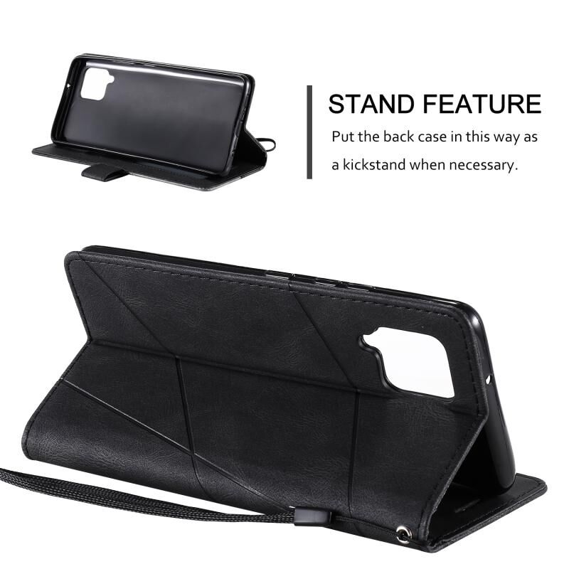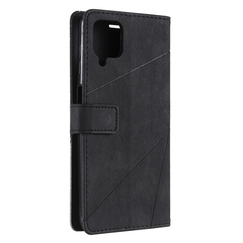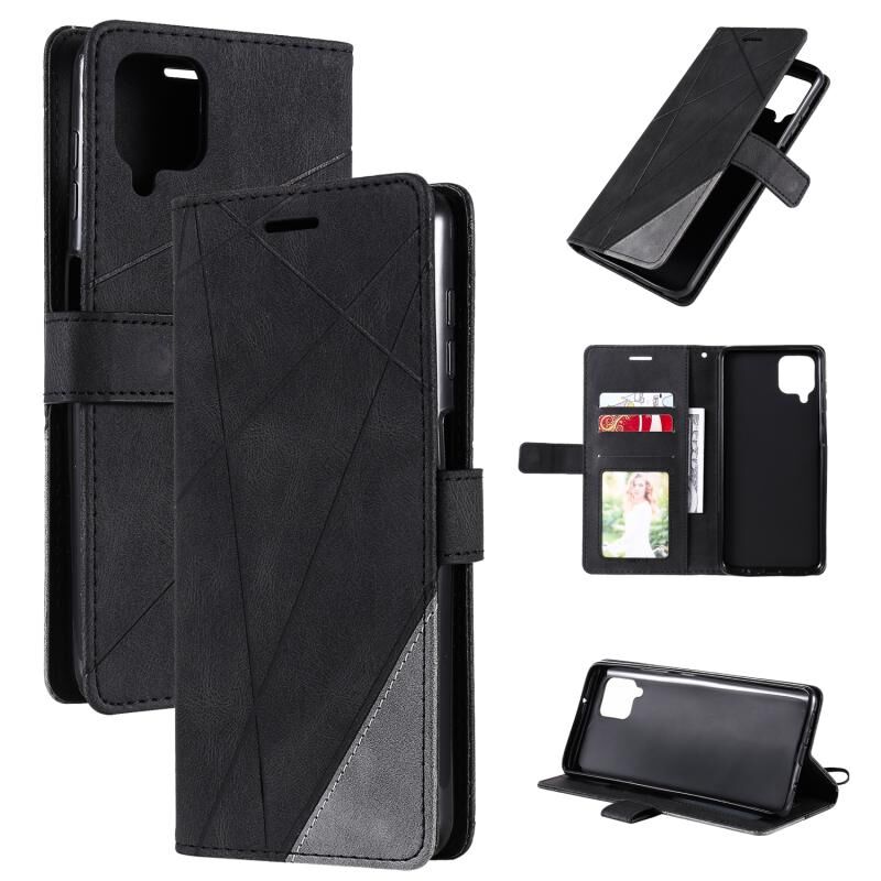 Για Samsung Galaxy A12 Skin Feel Splicing οριζόντια Flip δερμάτινη θήκη με θήκη & υποδοχές για κάρτες & πορτοφόλι & πλαίσιο φωτογραφιών (μαύρο)