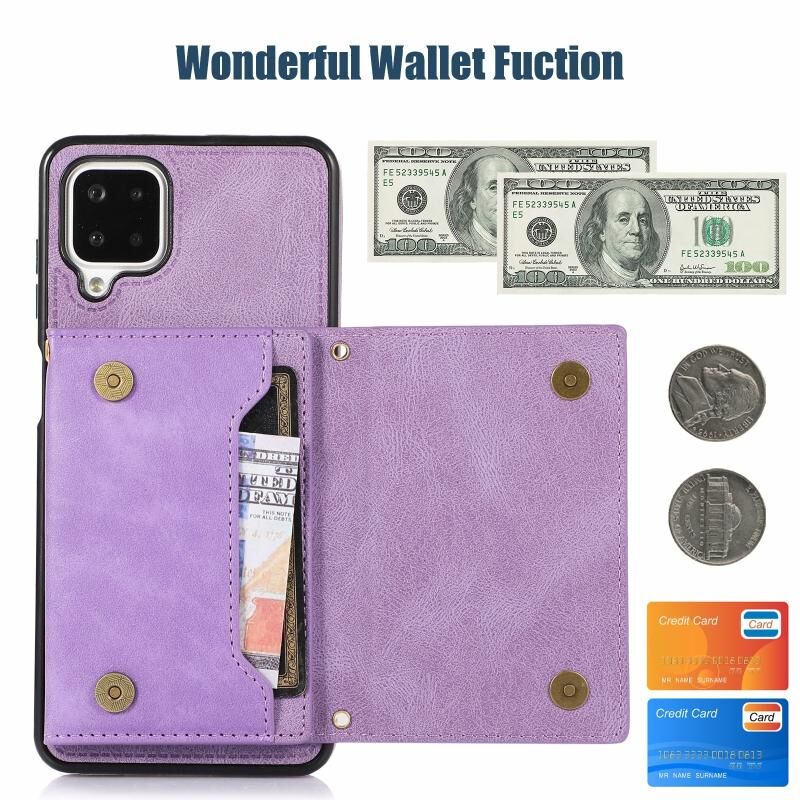 Για Samsung Galaxy A12 Τρεις φορές RFID δερμάτινη θήκη τηλεφώνου με κορδόνι (Μωβ)
