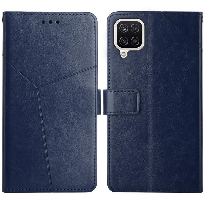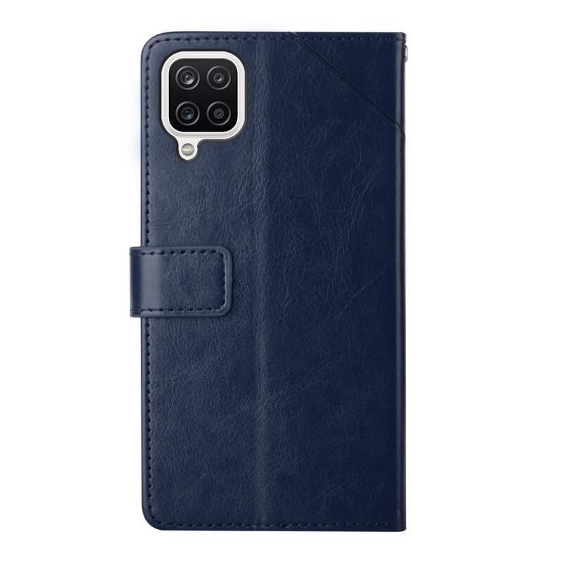 Για Samsung Galaxy A12 Y Stitching Οριζόντια Flip δερμάτινη θήκη με θήκη & υποδοχές για κάρτες & πορτοφόλι & κορνίζα φωτογραφιών (Μπλε)