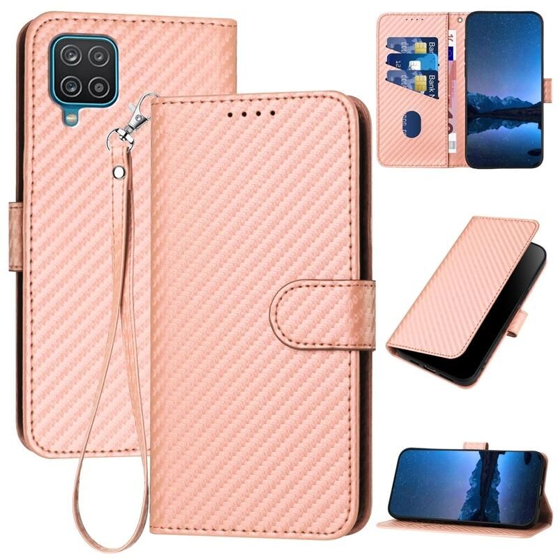 Για Samsung Galaxy A12 YX0070 Carbon Fiber Πόρπη Δερμάτινη θήκη τηλεφώνου με κορδόνι (ροζ)