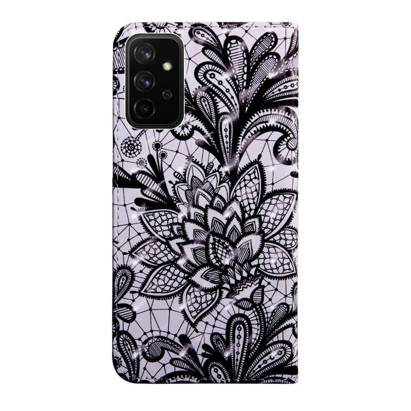 Θήκη τηλεφώνου Samsung Galaxy A13 4G με δερμάτινη υφή, σχέδιο 3D ζωγραφικής, πολύχρωμο σχέδιο (Μαύρο Δαντέλα)