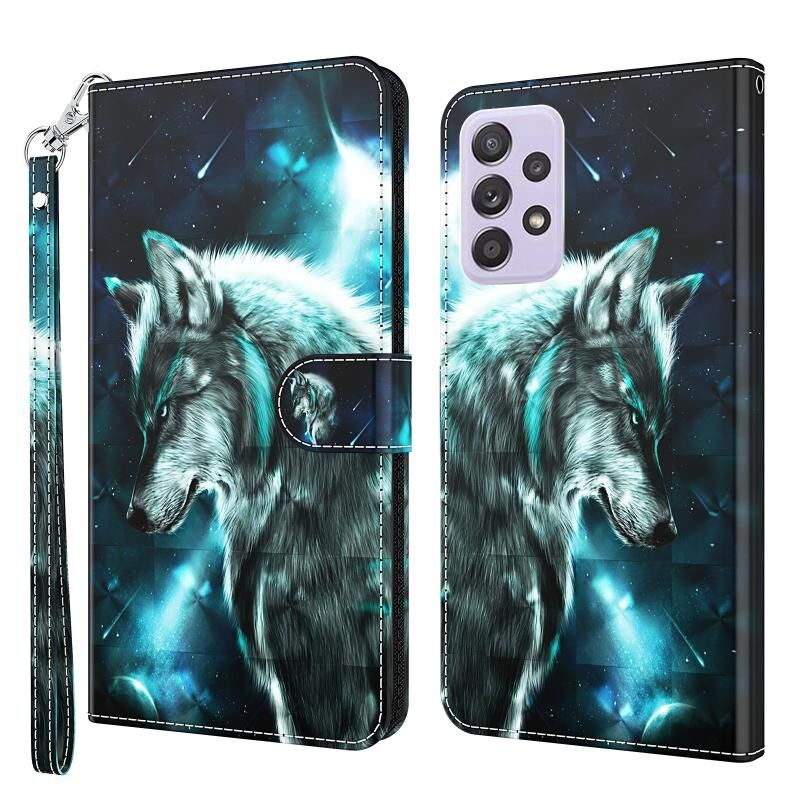 Θήκη κινητού τηλεφώνου για Samsung Galaxy A13 4G, TPU + Δερμάτινη PU, με τρισδιάστατο σχέδιο (Λύκος)
