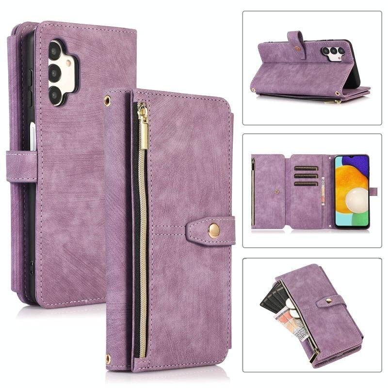 Για Samsung Galaxy A13 4G / 5G / A04 / A04s Dream 9-Card πορτοφόλι φερμουάρ τσάντα φερμουάρ δερμάτινη θήκη τηλεφώνου (μωβ)