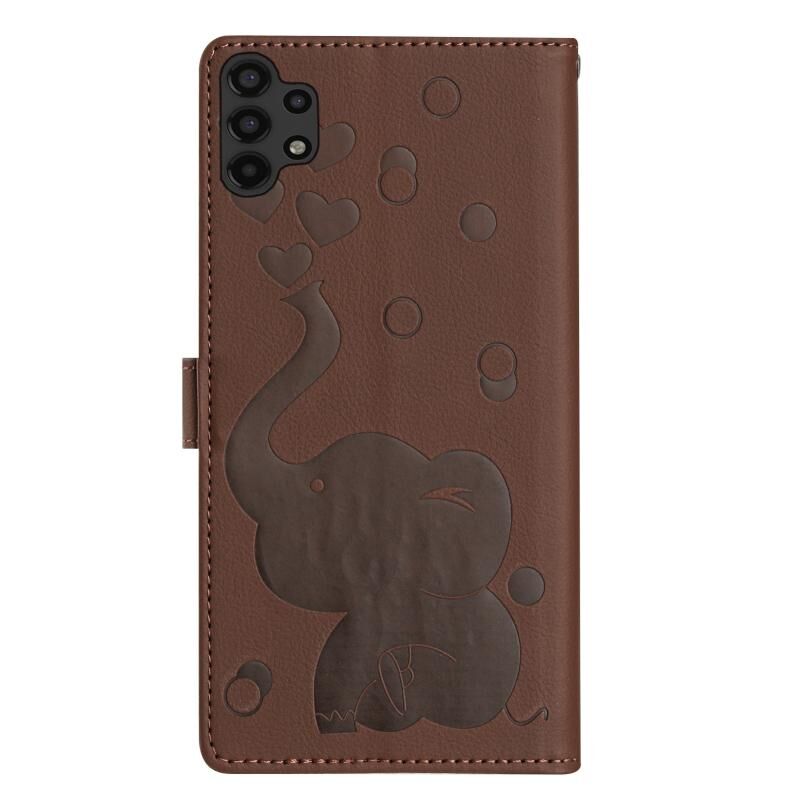 Θήκη τηλεφώνου από δέρμα με ανάγλυφο σχέδιο καρτούν ελέφαντα για Samsung Galaxy A13 4G / 5G (Μπλε)