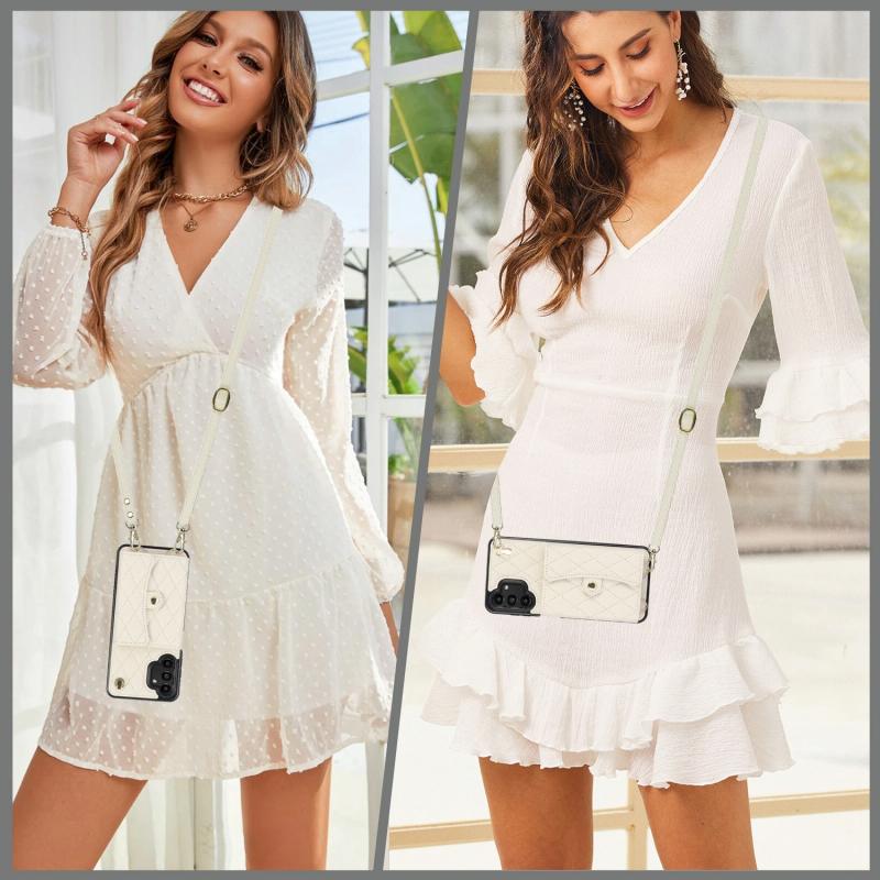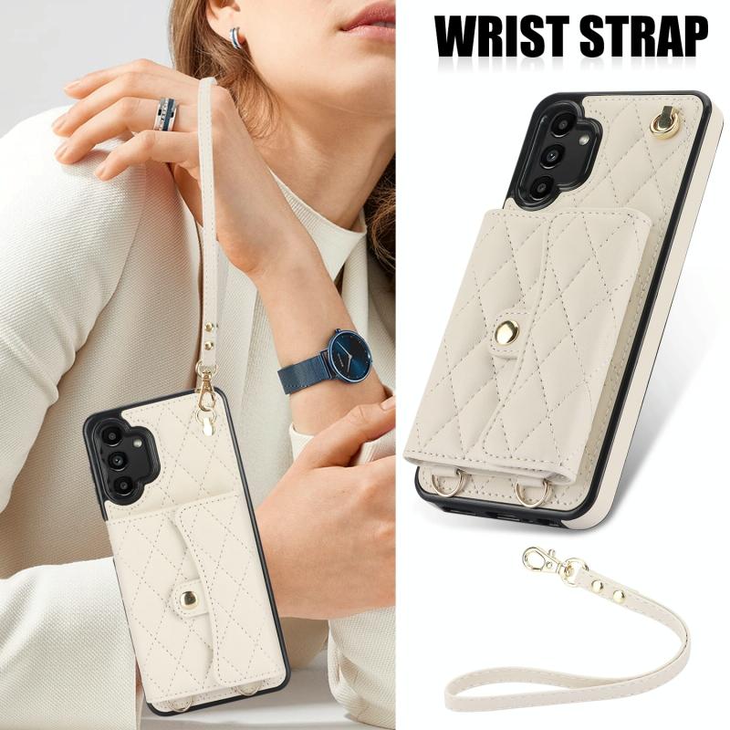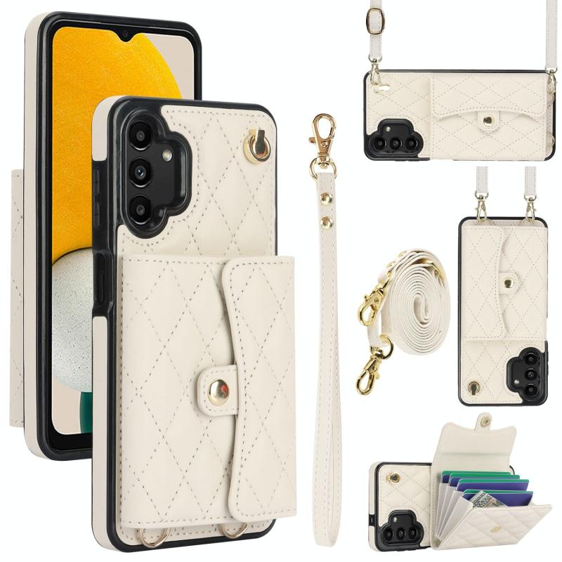 For Samsung Galaxy A13 4G/5G Crossbody Rhombic Horizontal Wallet Leather Phone Case(White)