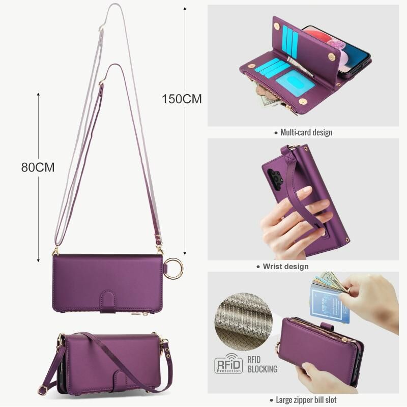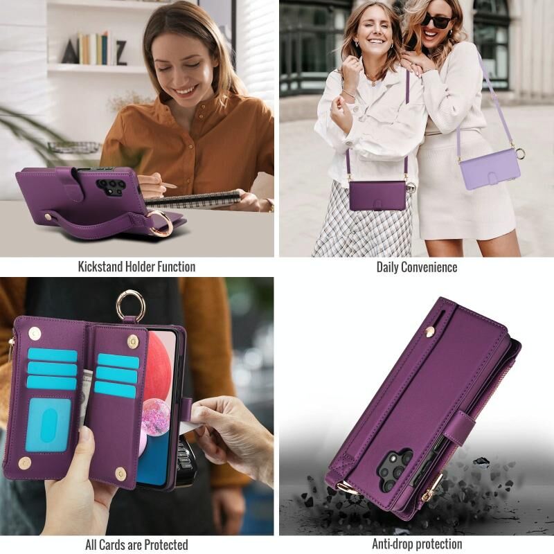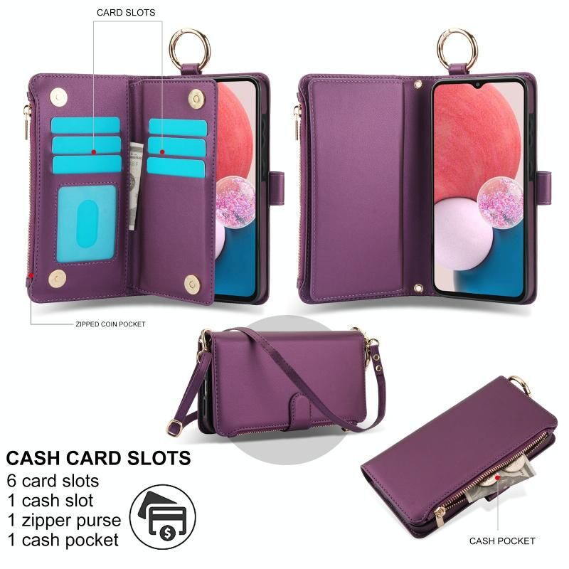 Για Samsung Galaxy A13 4G / 5G Crossbody Ring Πολυλειτουργική θήκη τηλεφώνου δερμάτινο πορτοφόλι (Σκούρο μωβ)