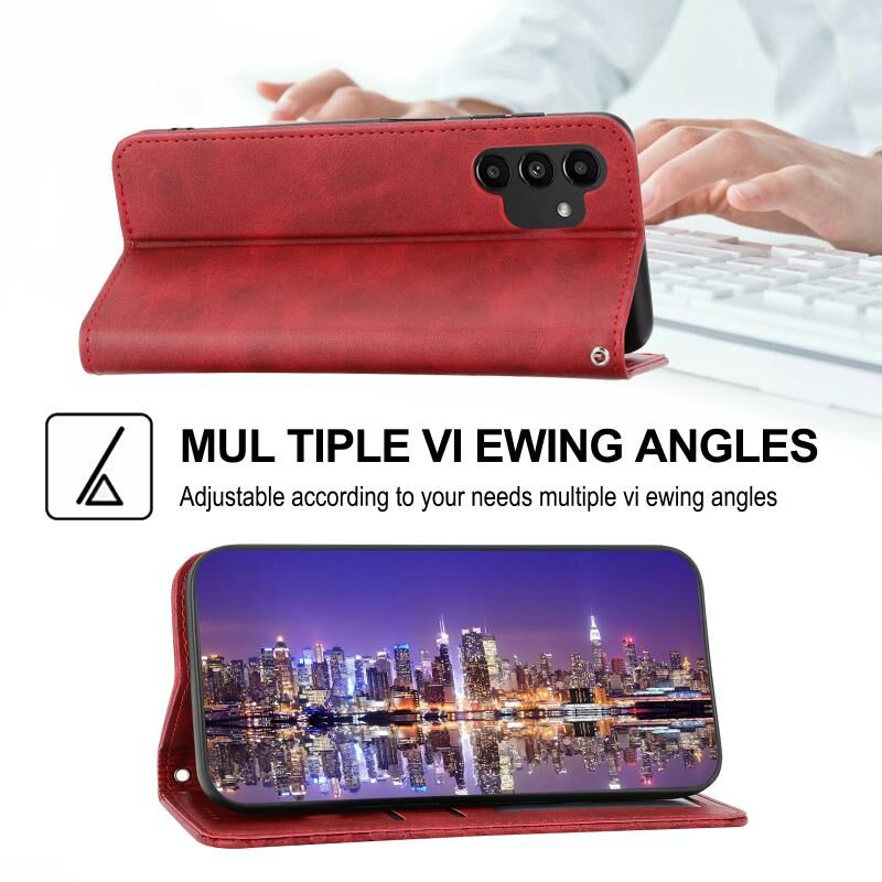 Για Samsung Galaxy A13 4G / 5G Cubic Grid Calf Texture μαγνητικό κλείσιμο δερμάτινη θήκη τηλεφώνου (Κόκκινο)