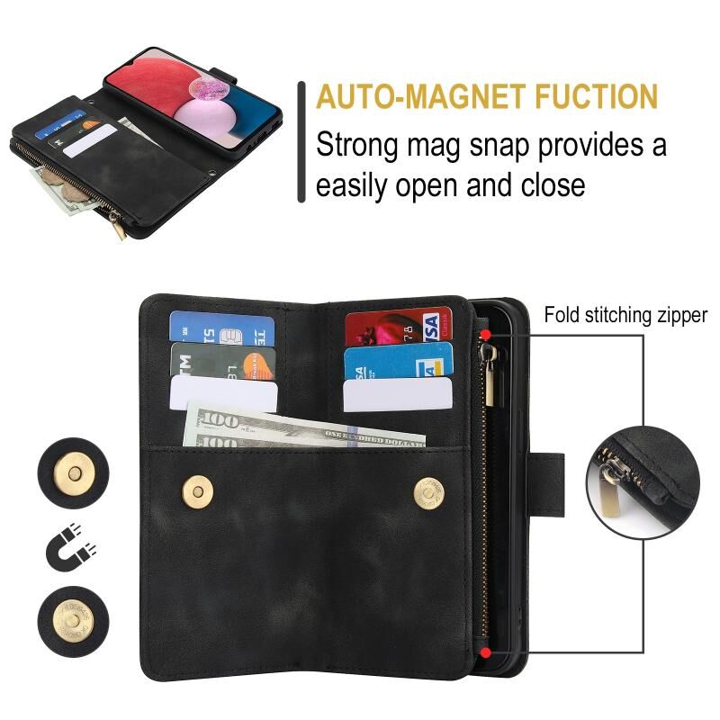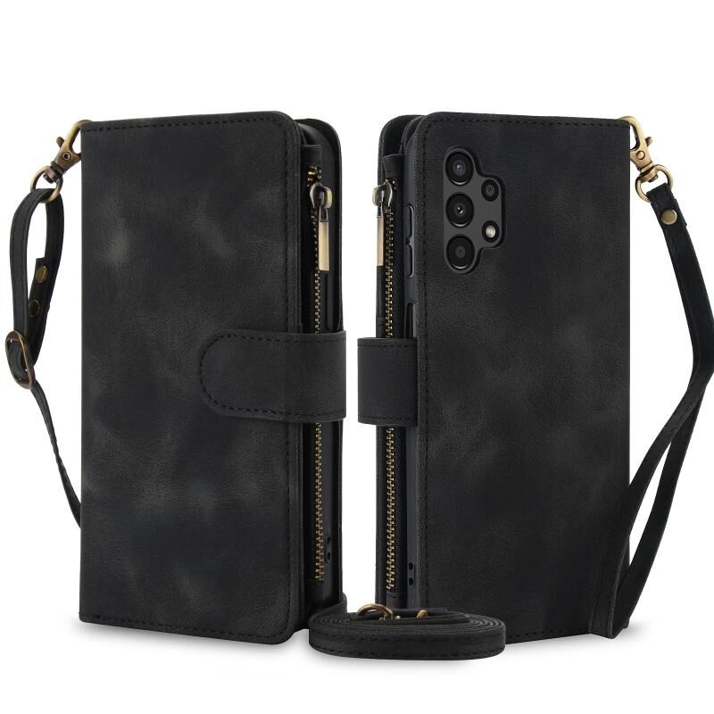 Για Samsung Galaxy A13 4G / 5G Dream 9-Card φερμουάρ πορτοφόλι RFID Δερμάτινη θήκη τηλεφώνου με κορδόνι(Μαύρο)