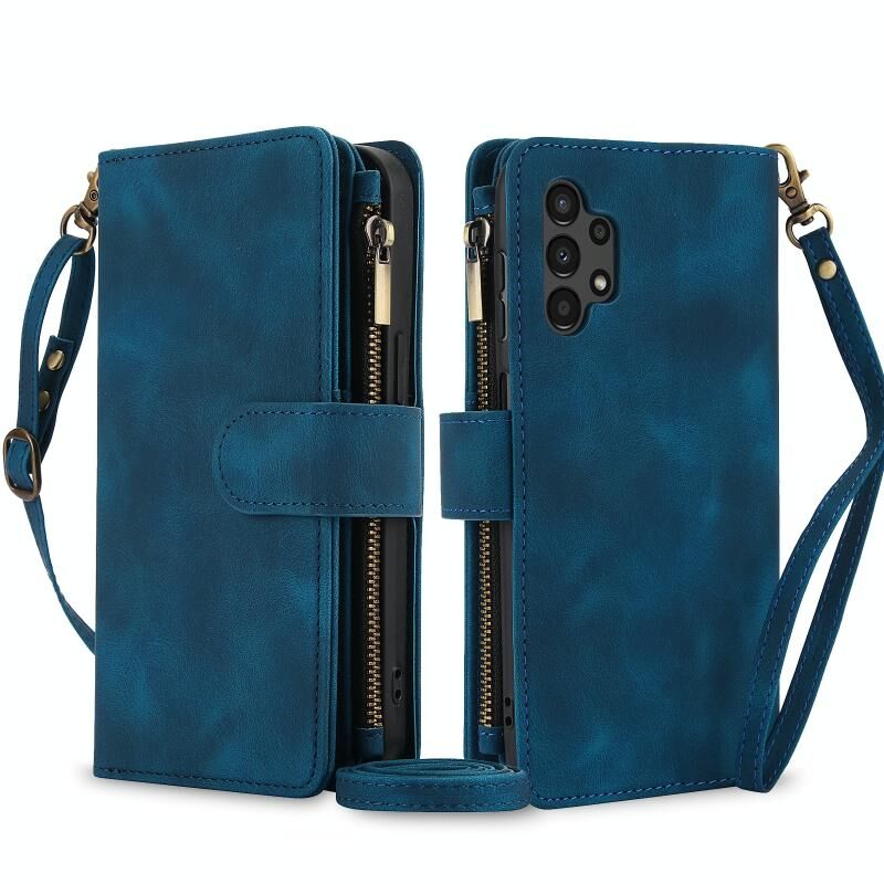 Για Samsung Galaxy A13 4G / 5G Dream 9-Card φερμουάρ πορτοφόλι RFID δερμάτινη θήκη τηλεφώνου με κορδόνι (μπλε)