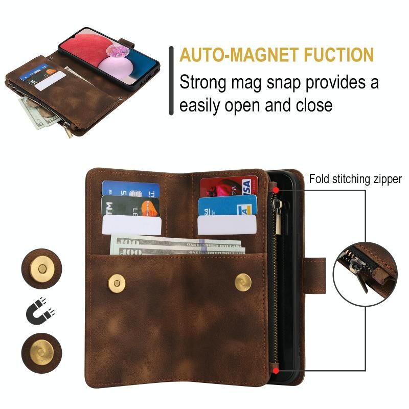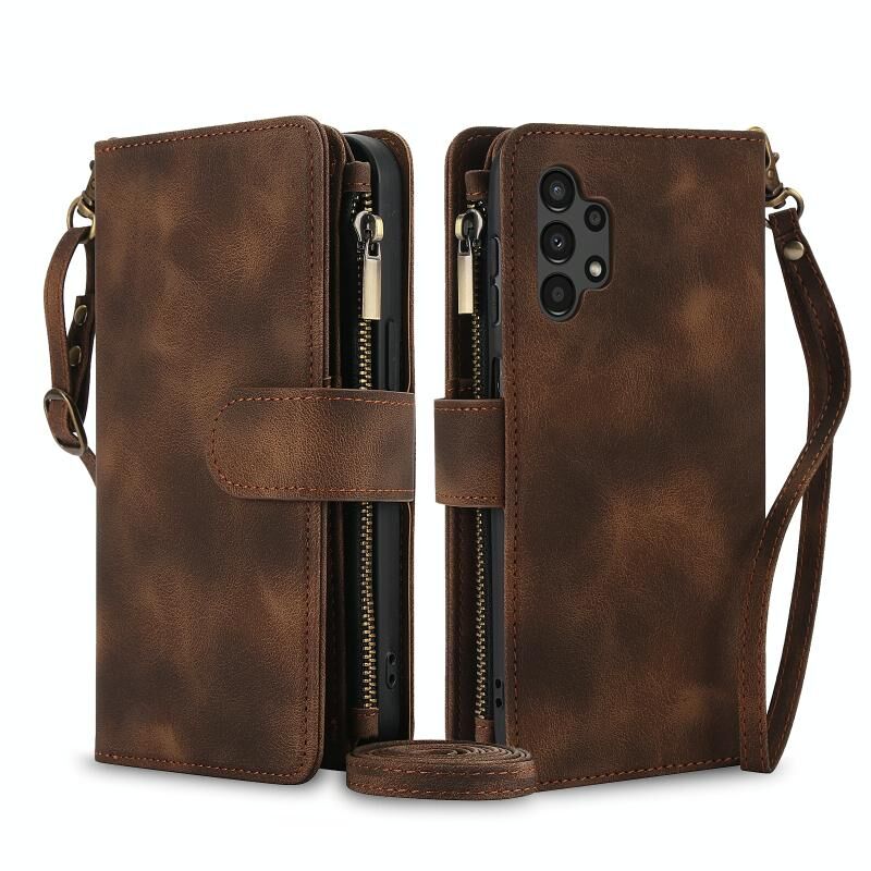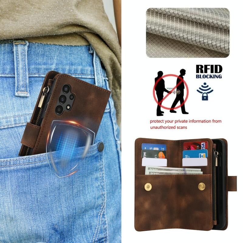 Για Samsung Galaxy A13 4G / 5G Dream 9-Card φερμουάρ πορτοφόλι RFID δερμάτινη θήκη τηλεφώνου με κορδόνι (Καφέ)