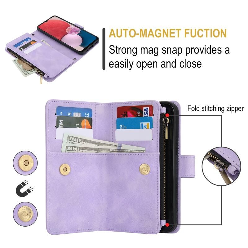 Για Samsung Galaxy A13 4G / 5G Dream 9-Card φερμουάρ πορτοφόλι RFID δερμάτινη θήκη τηλεφώνου με κορδόνι (μωβ)