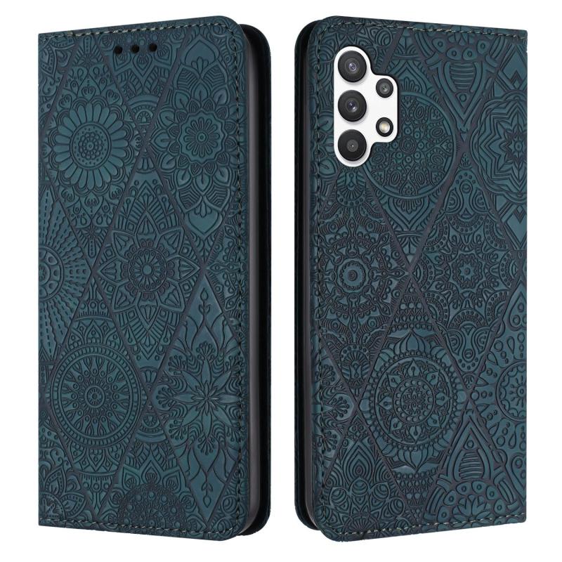 Θήκη τηλεφώνου Samsung Galaxy A13 4G/5G από δέρμα με έθνικ ανάγλυφο και απορρόφηση (Μπλε)