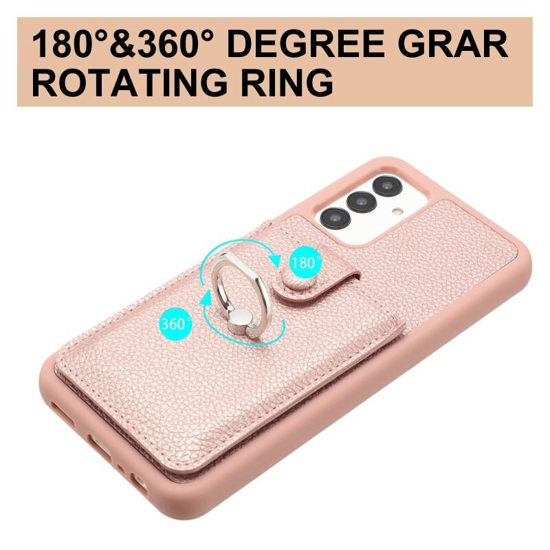 Για Samsung Galaxy A13 4G / 5G Litchi Υφή Σχεδίαση κάρτα τσάντα δαχτυλίδι κάτοχος υπόθεση τηλεφώνου (Ροζ χρυσός)