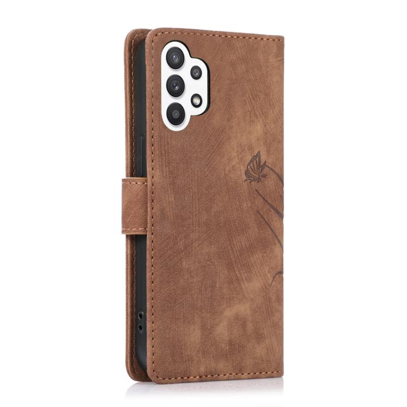 For Samsung Galaxy A13 4G / 5G Orchid Butterfly Embossed Leather Phone Case(Brown)