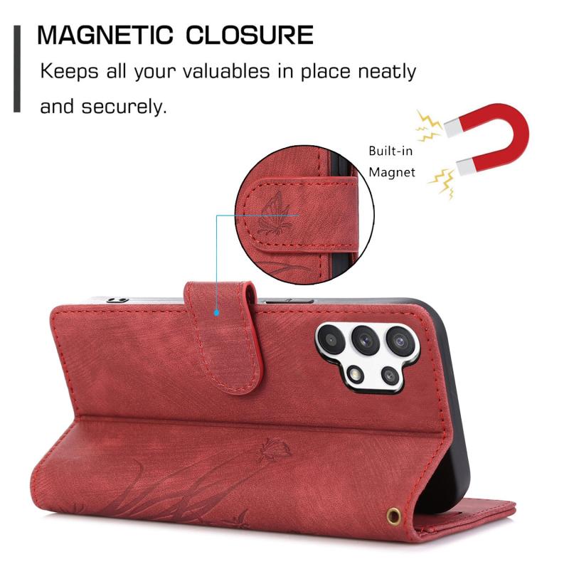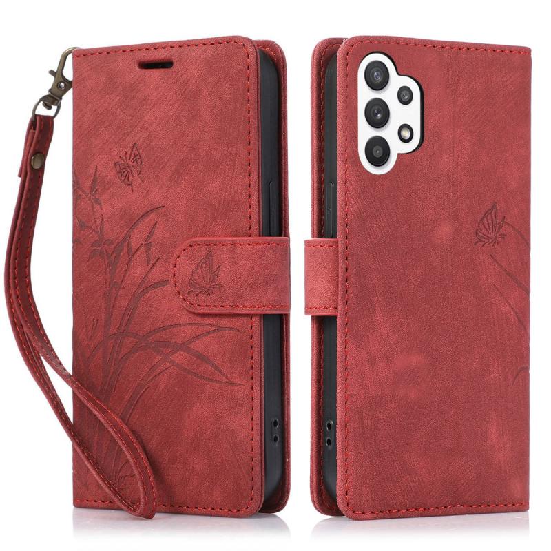 For Samsung Galaxy A13 4G / 5G Orchid Butterfly Embossed Leather Phone Case(Red)
