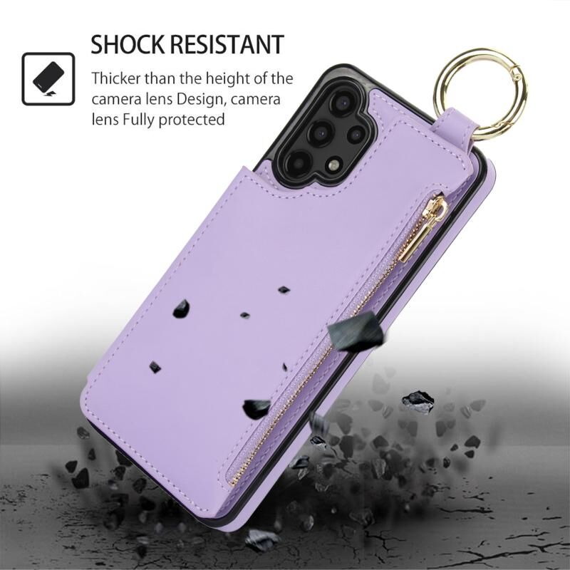 Για Samsung Galaxy A13 4G / 5G RFlD Anti-theft Διπλό πόρπη δαχτυλίδι φερμουάρ τηλέφωνο υπόθεση κάρτα (Μωβ)
