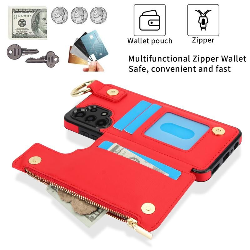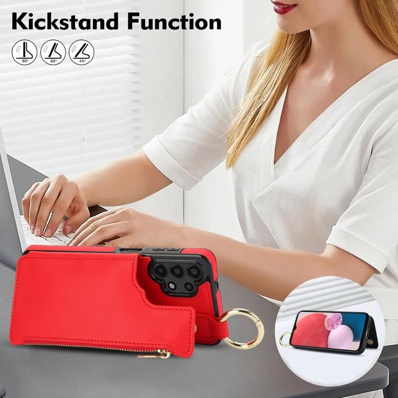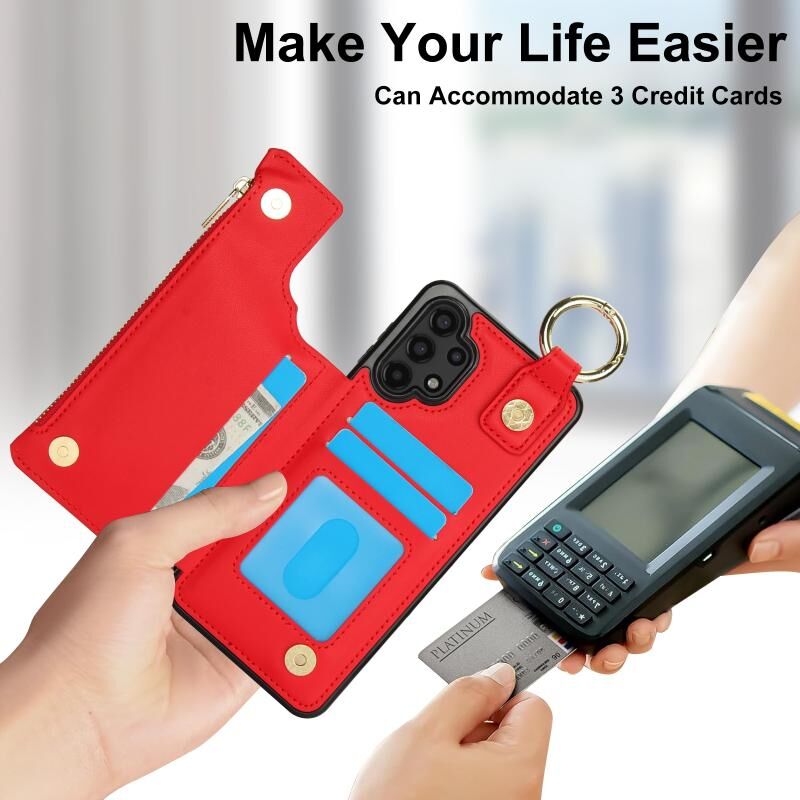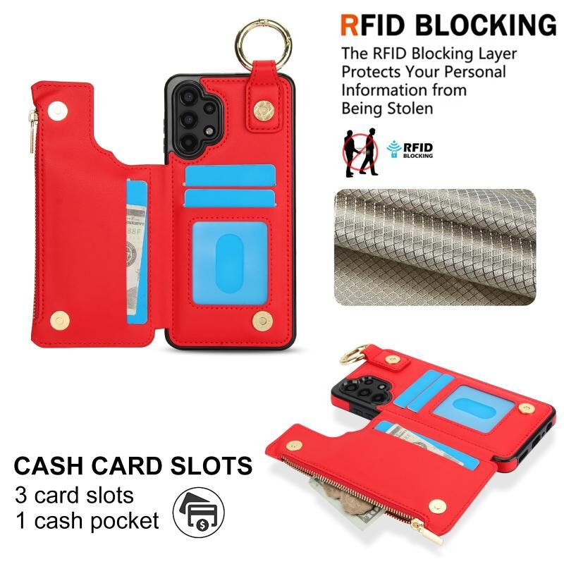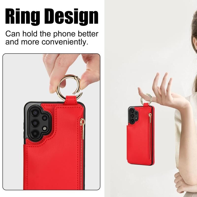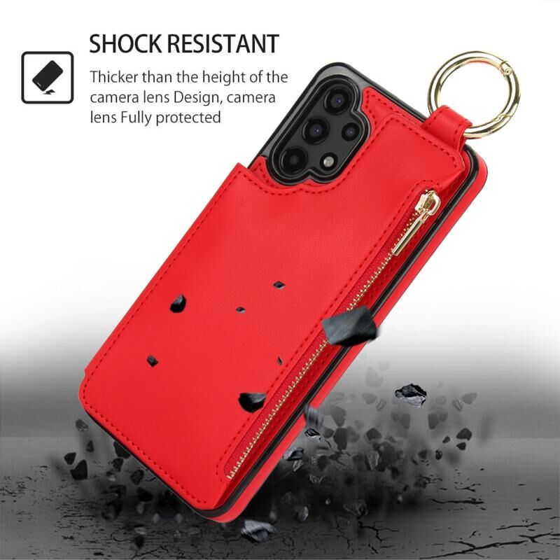 Για το Samsung Galaxy A13 4G / 5G RFlD Anti-theft Διπλό πόρπη δαχτυλίδι φερμουάρ τηλέφωνο υπόθεση κάρτα (Κόκκινο)