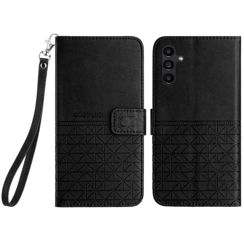 For Samsung Galaxy A13 4G / 5G Rhombic Texture Leather Phone Case with Lanyard(Black)