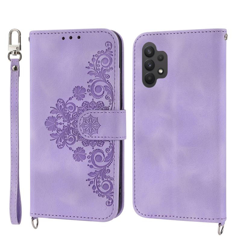 Θήκη τηλεφώνου Samsung Galaxy A13 4G / 5G από δέρμα με ανάγλυφα λουλούδια και αίσθηση δέρματος (Μωβ)
