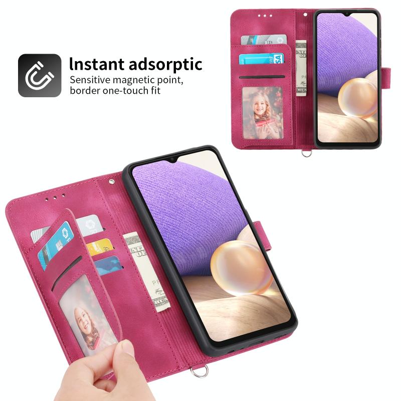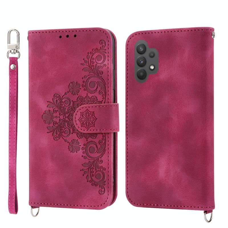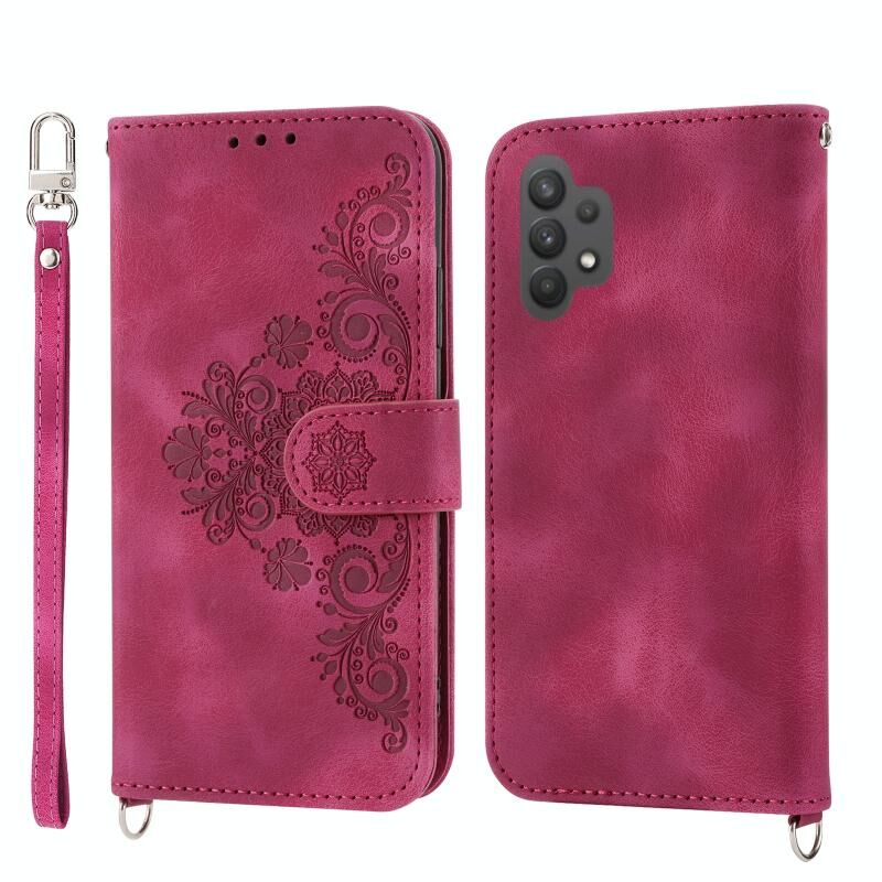 Θήκη τηλεφώνου Samsung Galaxy A13 4G / 5G από δέρμα με ανάγλυφα λουλούδια και αίσθηση δέρματος (Κρασοκόκκινο)