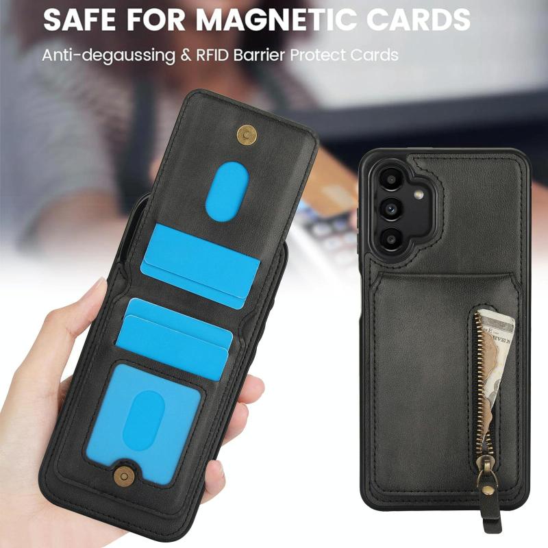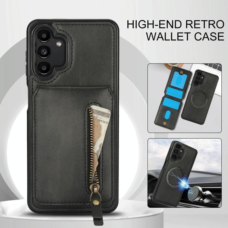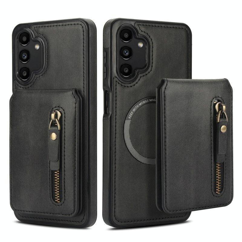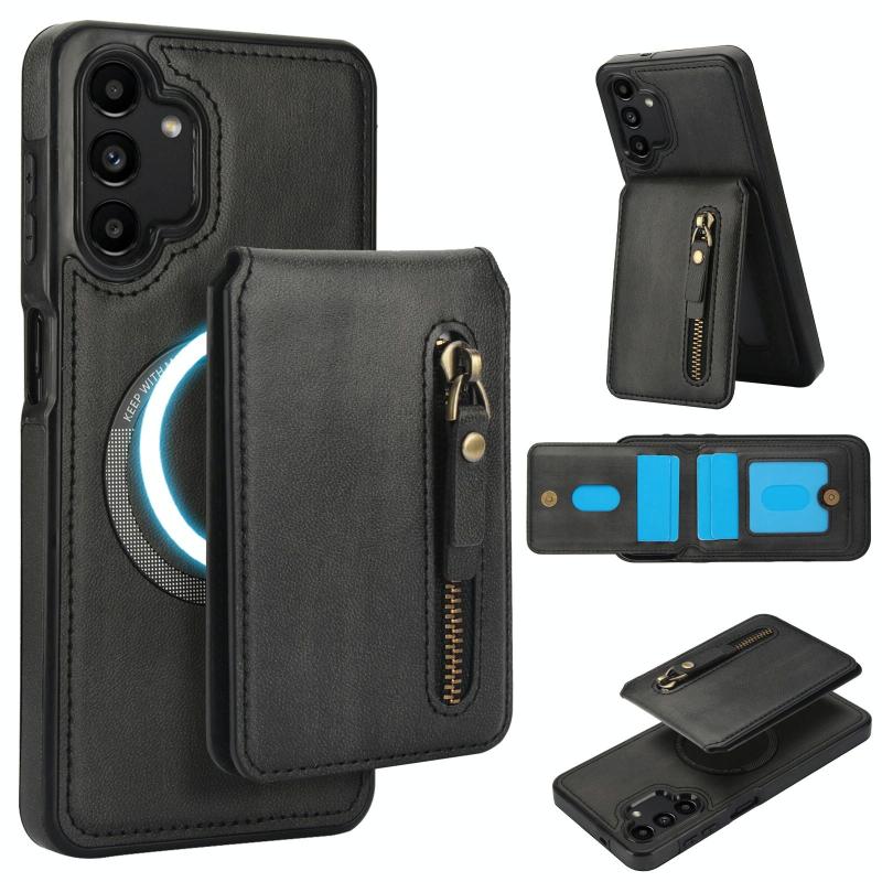 Για Samsung Galaxy A13 4G / 5G Δερμάτινη Θήκη Wallet με MagSafe & Φερμουάρ (Μαύρο)