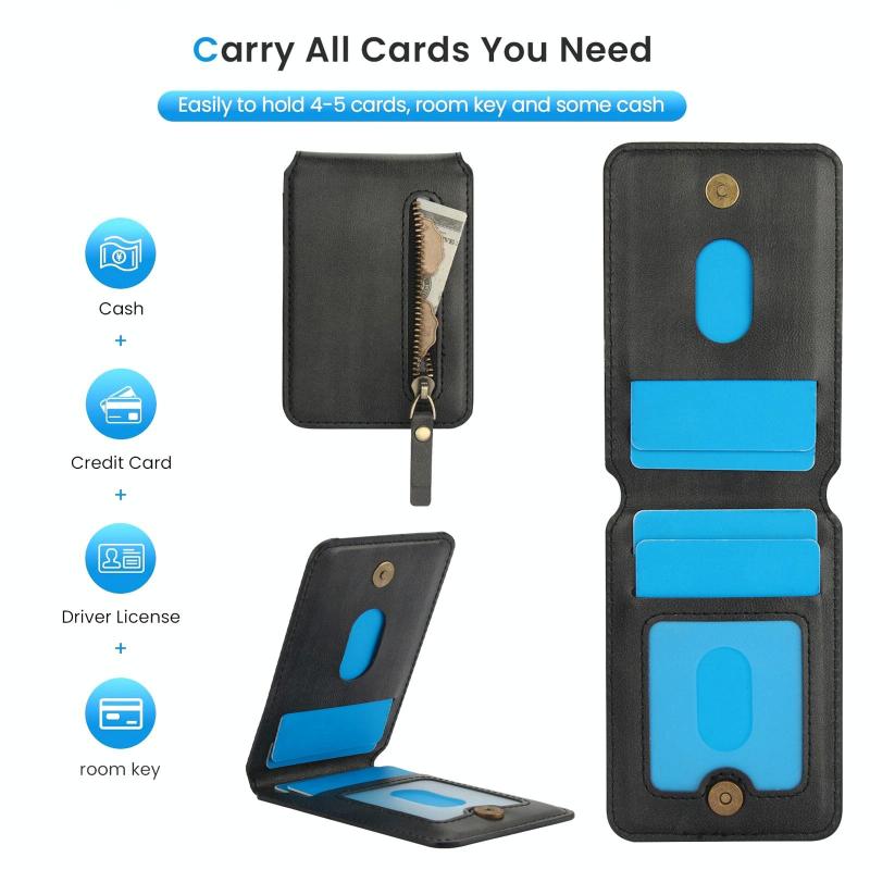 2. Λειτουργία πορτοφολιού με φερμουάρ: Περιλαμβάνει υποδοχές για κάρτες και θήκη για μετρητά για την αποθήκευση των πιστωτικών σας καρτών, μετρητών ή μικρών σημειώσεων.