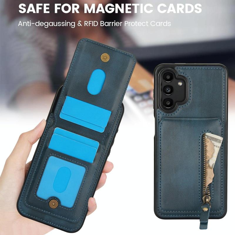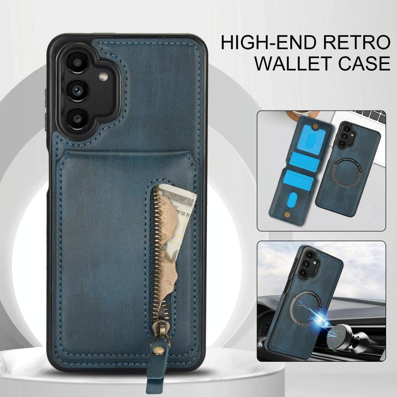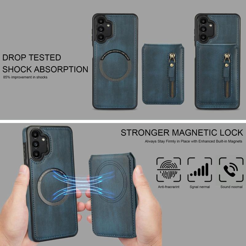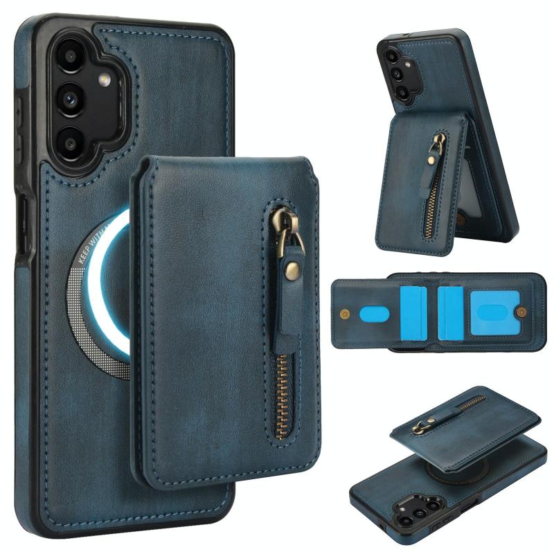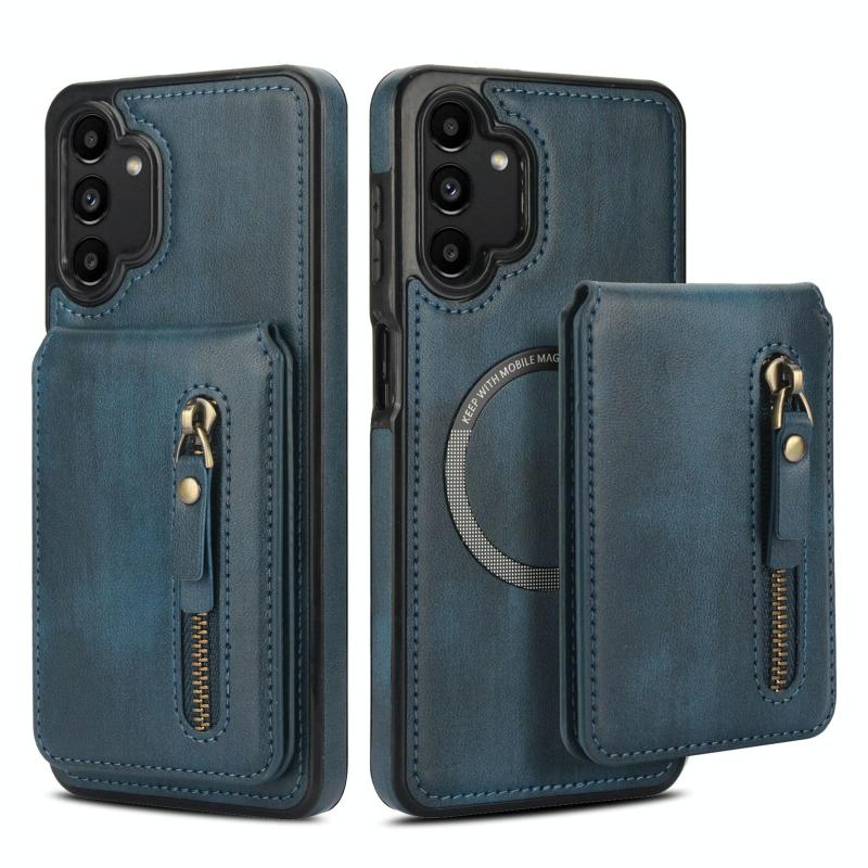 For Samsung Galaxy A13 4G / 5G Zipper Wallet Split MagSafe Leather Back Phone Case(Blue)