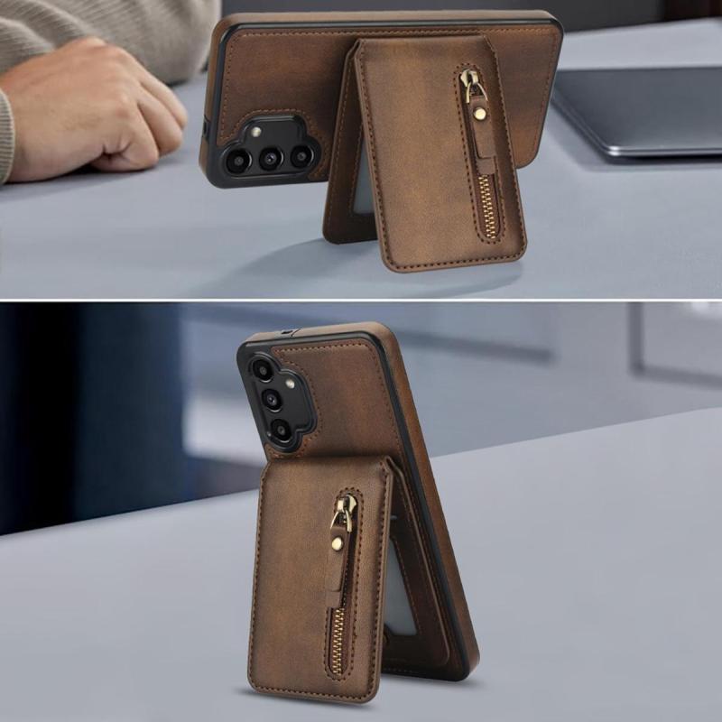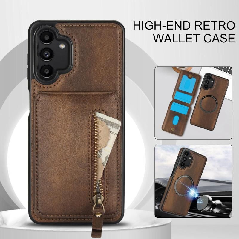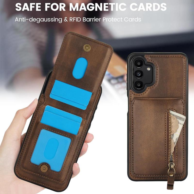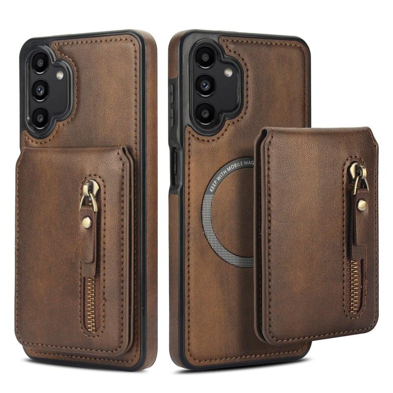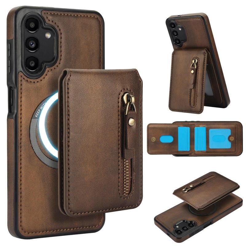 For Samsung Galaxy A13 4G / 5G Zipper Wallet Split MagSafe Leather Back Phone Case(Brown)
