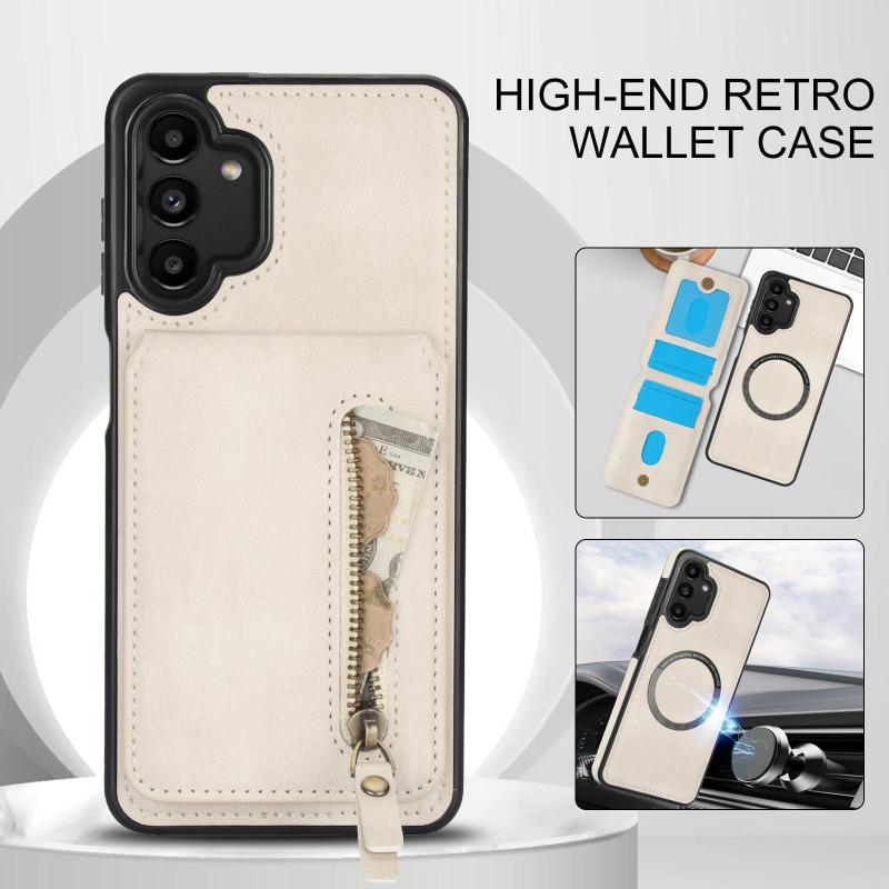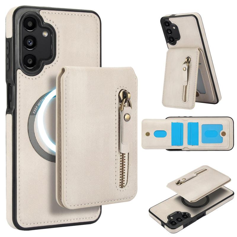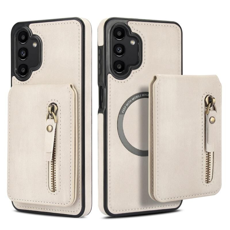 For Samsung Galaxy A13 4G / 5G Zipper Wallet Split MagSafe Leather Back Phone Case(White)