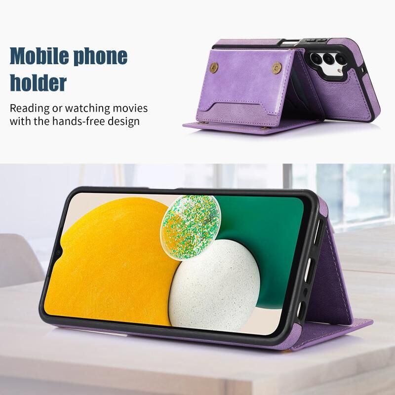 Θήκη τηλεφώνου από δέρμα με προστασία RFID, τριπλή, για Samsung Galaxy A13 4G/A13 5G με κορδόνι (Μαύρο)