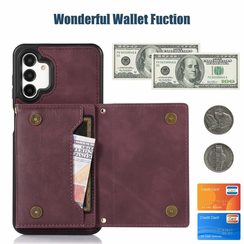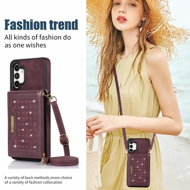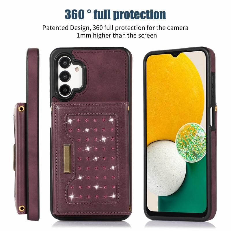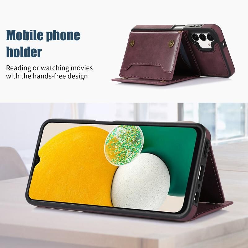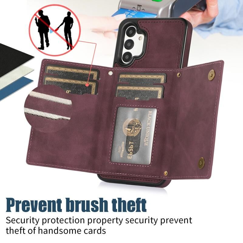 Θήκη τηλεφώνου από δέρμα με προστασία RFID, τριπλή, για Samsung Galaxy A13 4G/A13 5G με κορδόνι (Μαύρο)