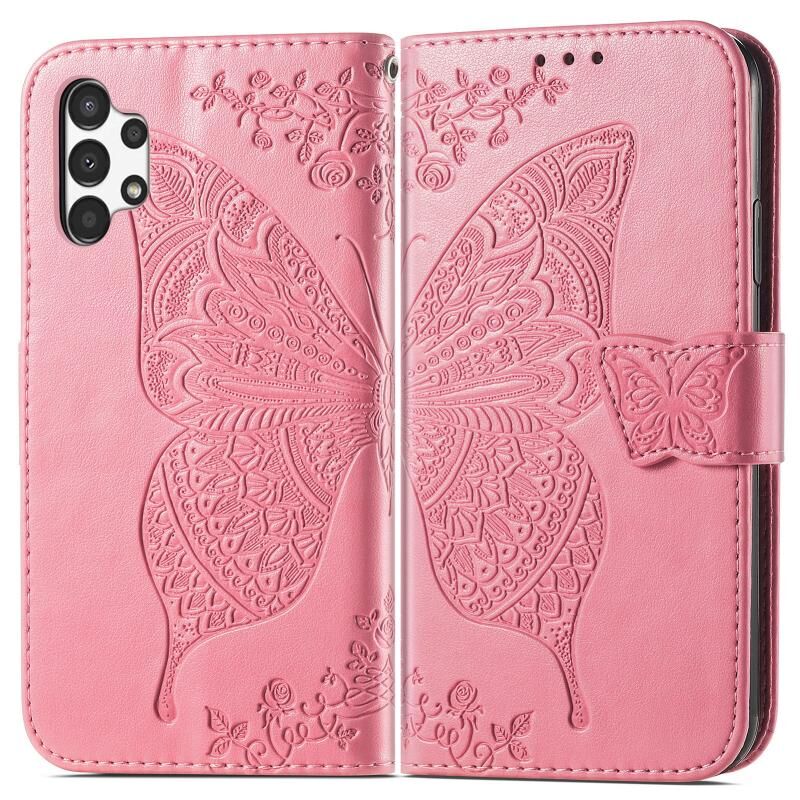 Για Samsung Galaxy A13 4G πεταλούδα αγάπη λουλούδι ανάγλυφο δέρμα υπόθεση τηλεφώνου (ροζ)