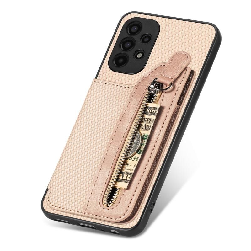 Για Samsung Galaxy A13 4G Carbon Fiber οριζόντια Flip φερμουάρ πορτοφόλι τηλέφωνο υπόθεση (χακί)