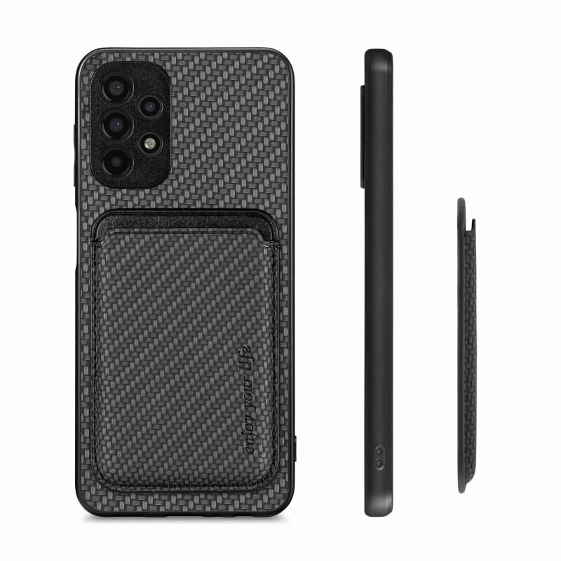 Θήκη τηλεφώνου Samsung Galaxy A13 4G από ανθρακονήματα και δέρμα με κάρτες και μαγνητική σύνδεση MagSafe (Μαύρο)