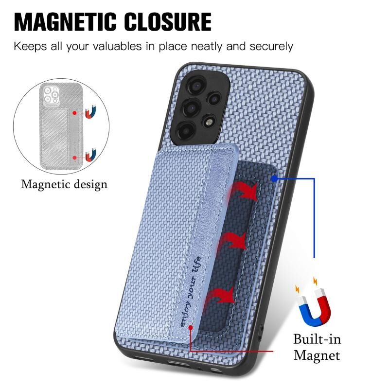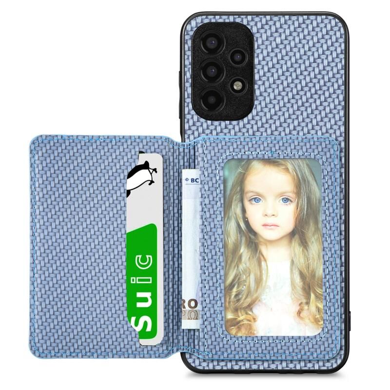 Για Samsung Galaxy A13 4G ίνες άνθρακα μαγνητική κάρτα πορτοφόλι τσάντα υπόθεση τηλεφώνου (μπλε)