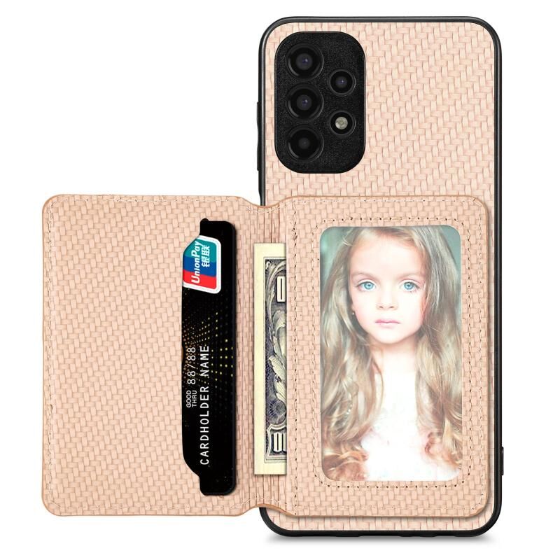 Για Samsung Galaxy A13 4G ίνες άνθρακα μαγνητική κάρτα πορτοφόλι τσάντα υπόθεση τηλεφώνου (Χακί)