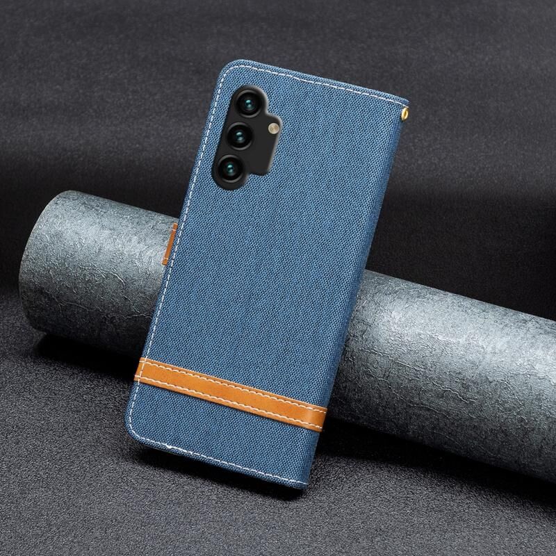 Για το Samsung Galaxy A13 4G χρώμα ταιριάζει Denim υφή δερμάτινη θήκη τηλεφώνου (Σκούρο μπλε)