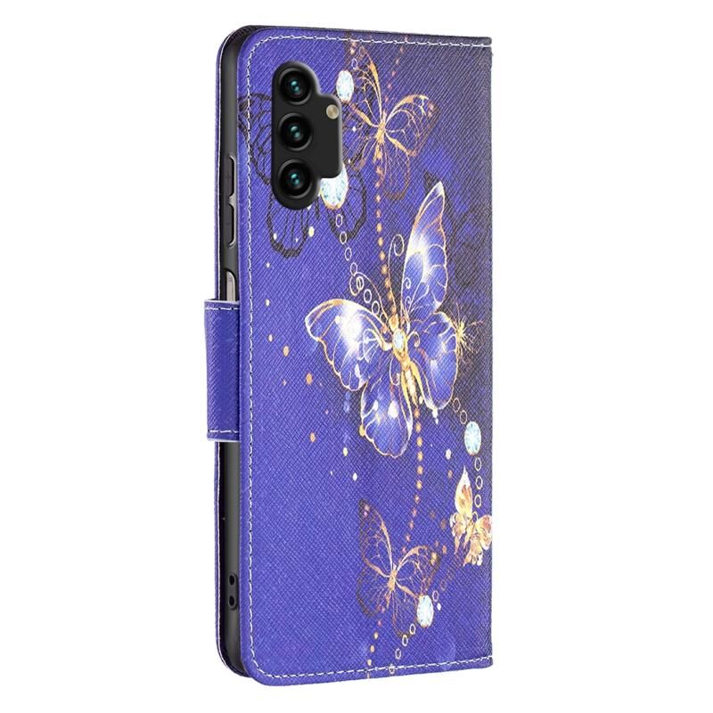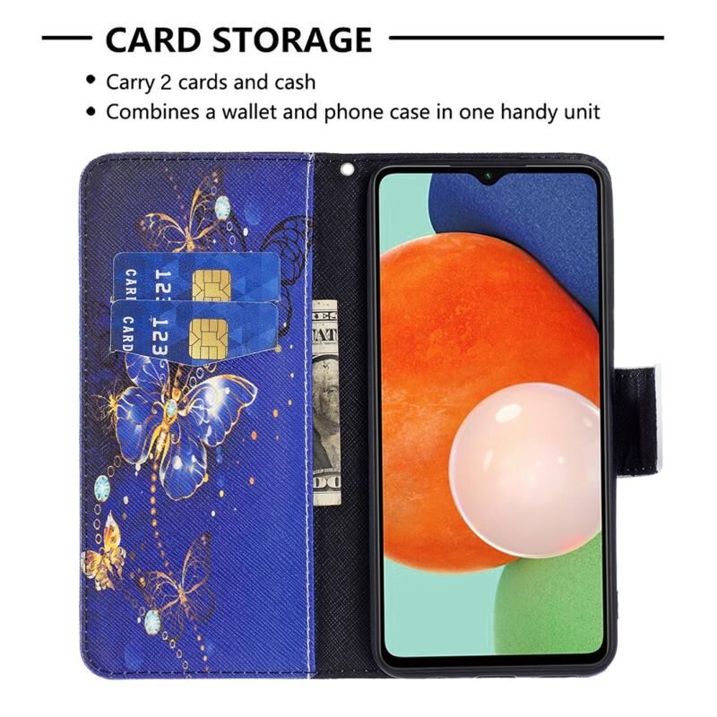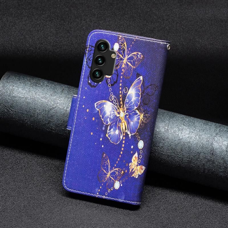 Θήκη τηλεφώνου Samsung Galaxy A13 4G από δέρμα με έγχρωμο σχέδιο (Χρυσή Πεταλούδα)