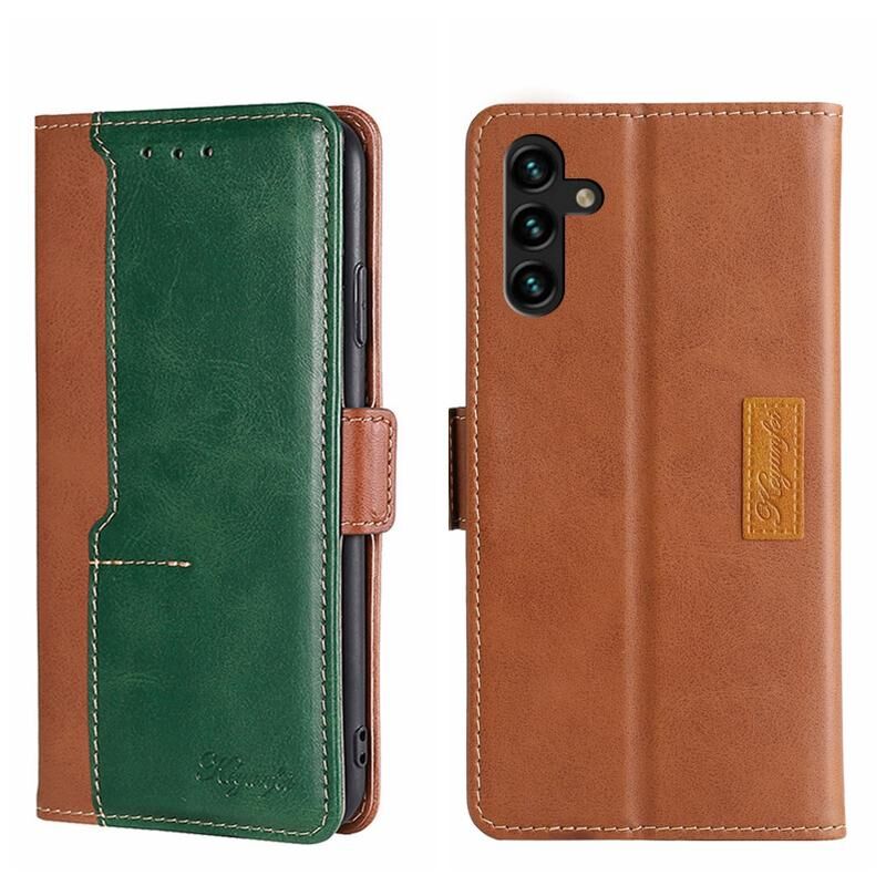 Για Samsung Galaxy A13 4G αντίθεση χρώμα πλευρά πόρπη δερμάτινη θήκη τηλεφώνου (ανοιχτό καφέ + πράσινο)